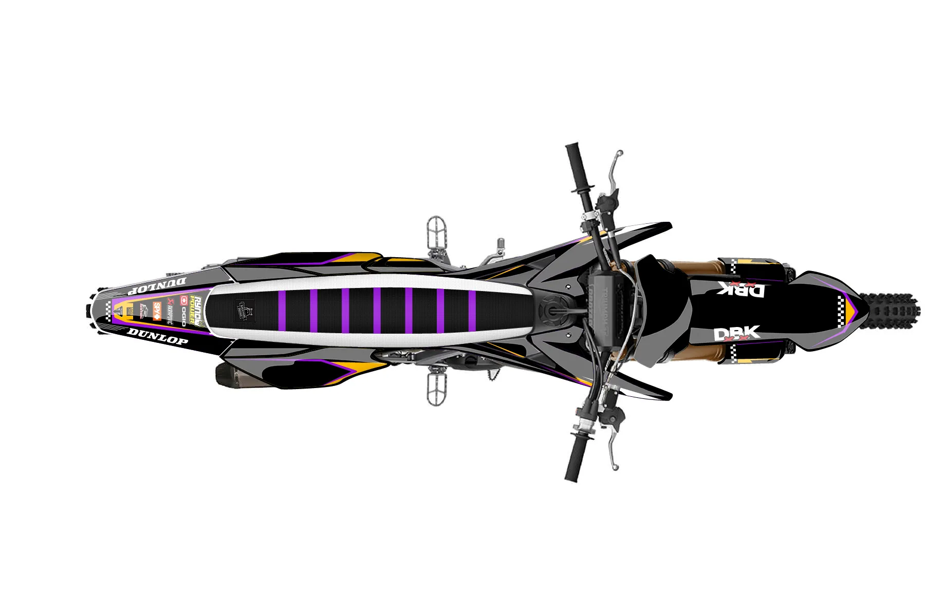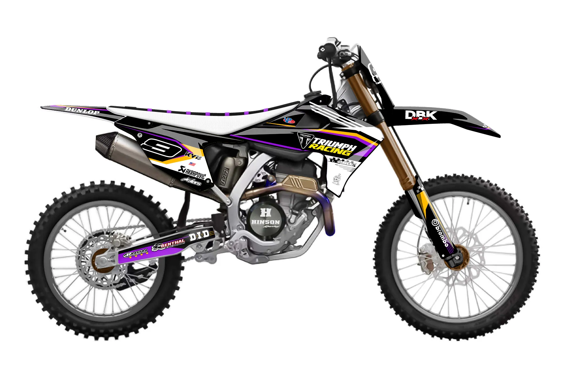 «Triumph 250 Final» — готовый комплект графики серии Staple для Triumph MX Graphic Kit Triumph TF250X 2024. В комплекте: графика на бак и боковые облицовки, крылья (переднее и заднее), передний щиток, номерные таблички, защита вилки. Материал: ПВХ-винил 80 мкр с холодной ламинацией 300 мкр, общая толщина 380 мкр; покрытие глянцевое или матовое на выбор. Устойчив к UV-излучению, воде, бензину и мойке высокого давления. Клей акриловый на сольвентной основе — постоянный, для гибких пластиков. На простых поверхностях монтируется без нагрева; для сложных изгибов рекомендуем фен. Этот пресет можно заказать как есть или взять за основу в конструкторе: поменять цвета, добавить стартовый номер и свой бренд. Производство — 3–5 рабочих дней, доставка по России СДЭКом или Почтой, по СНГ — курьерскими службами.