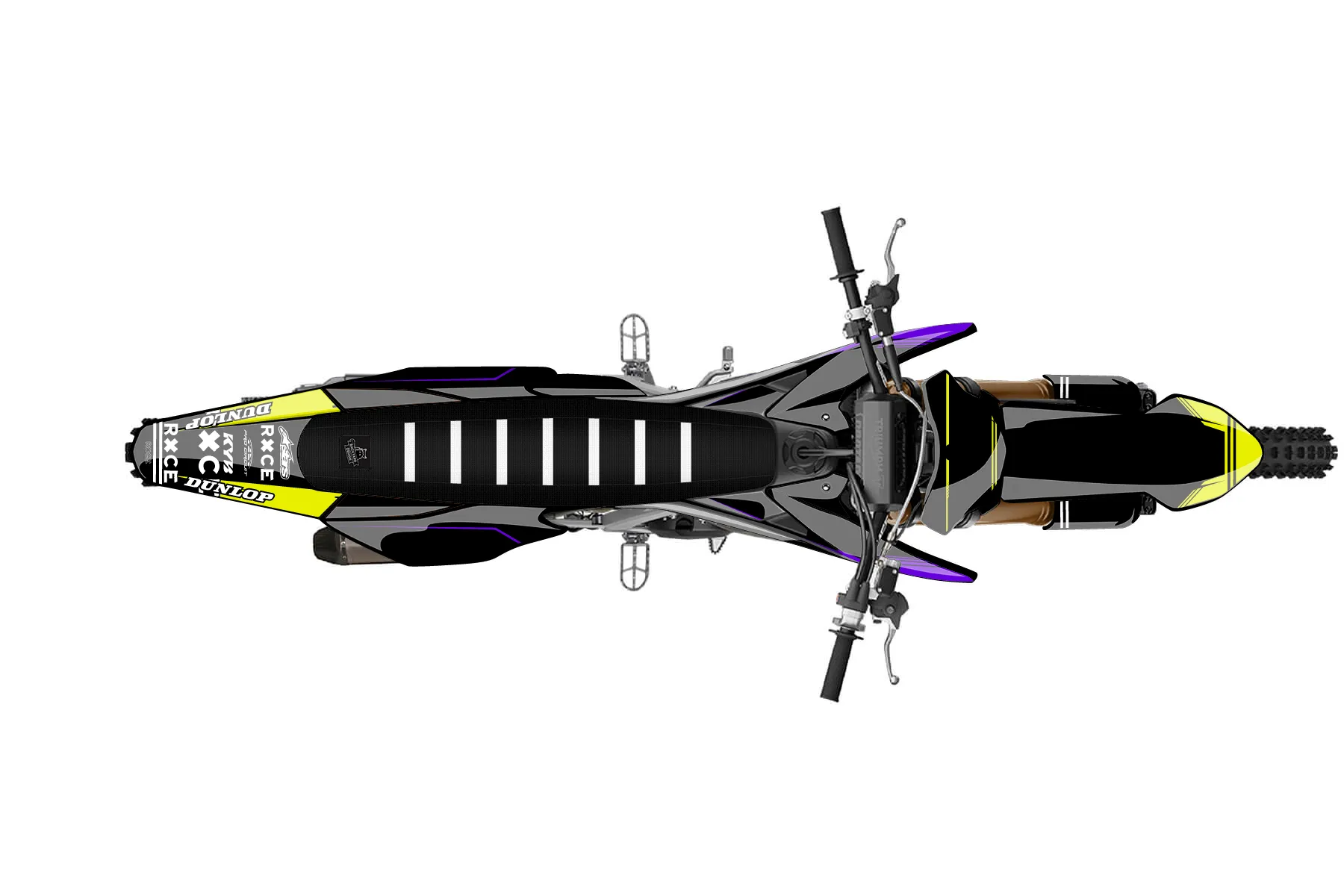 «CustomDesign» — готовый комплект графики серии Untucked для Triumph MX Graphic Kit Triumph TF250X 2024. В комплекте: графика на бак и боковые облицовки, крылья (переднее и заднее), передний щиток, номерные таблички, защита вилки. Материал: ПВХ-винил 80 мкр с холодной ламинацией 300 мкр, общая толщина 380 мкр; покрытие глянцевое или матовое на выбор. Устойчив к UV-излучению, воде, бензину и мойке высокого давления. Клей акриловый на сольвентной основе — постоянный, для гибких пластиков. На простых поверхностях монтируется без нагрева; для сложных изгибов рекомендуем фен. Этот пресет можно заказать как есть или взять за основу в конструкторе: поменять цвета, добавить стартовый номер и свой бренд. Производство — 3–5 рабочих дней, доставка по России СДЭКом или Почтой, по СНГ — курьерскими службами.