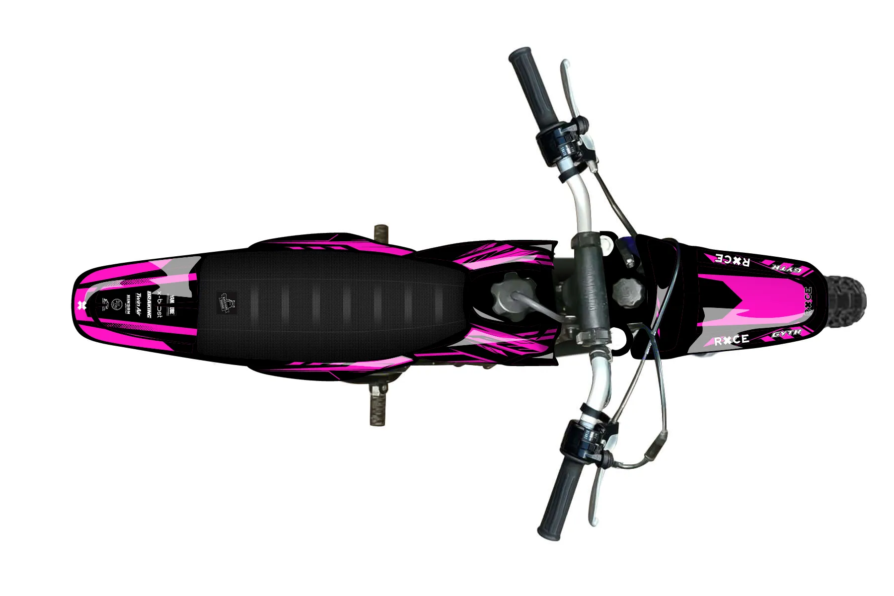 «kinley pw50 pink on black» — готовый комплект графики серии Maverick для Yamaha MX Graphic Kit Yamaha PW 50 1996. В комплекте: графика на бак и боковые облицовки, крылья (переднее и заднее), передний щиток, номерные таблички, защита вилки. Материал: ПВХ-винил 80 мкр с холодной ламинацией 300 мкр, общая толщина 380 мкр; покрытие глянцевое или матовое на выбор. Устойчив к UV-излучению, воде, бензину и мойке высокого давления. Клей акриловый на сольвентной основе — постоянный, для гибких пластиков. На простых поверхностях монтируется без нагрева; для сложных изгибов рекомендуем фен. Этот пресет можно заказать как есть или взять за основу в конструкторе: поменять цвета, добавить стартовый номер и свой бренд. Производство — 3–5 рабочих дней, доставка по России СДЭКом или Почтой, по СНГ — курьерскими службами.