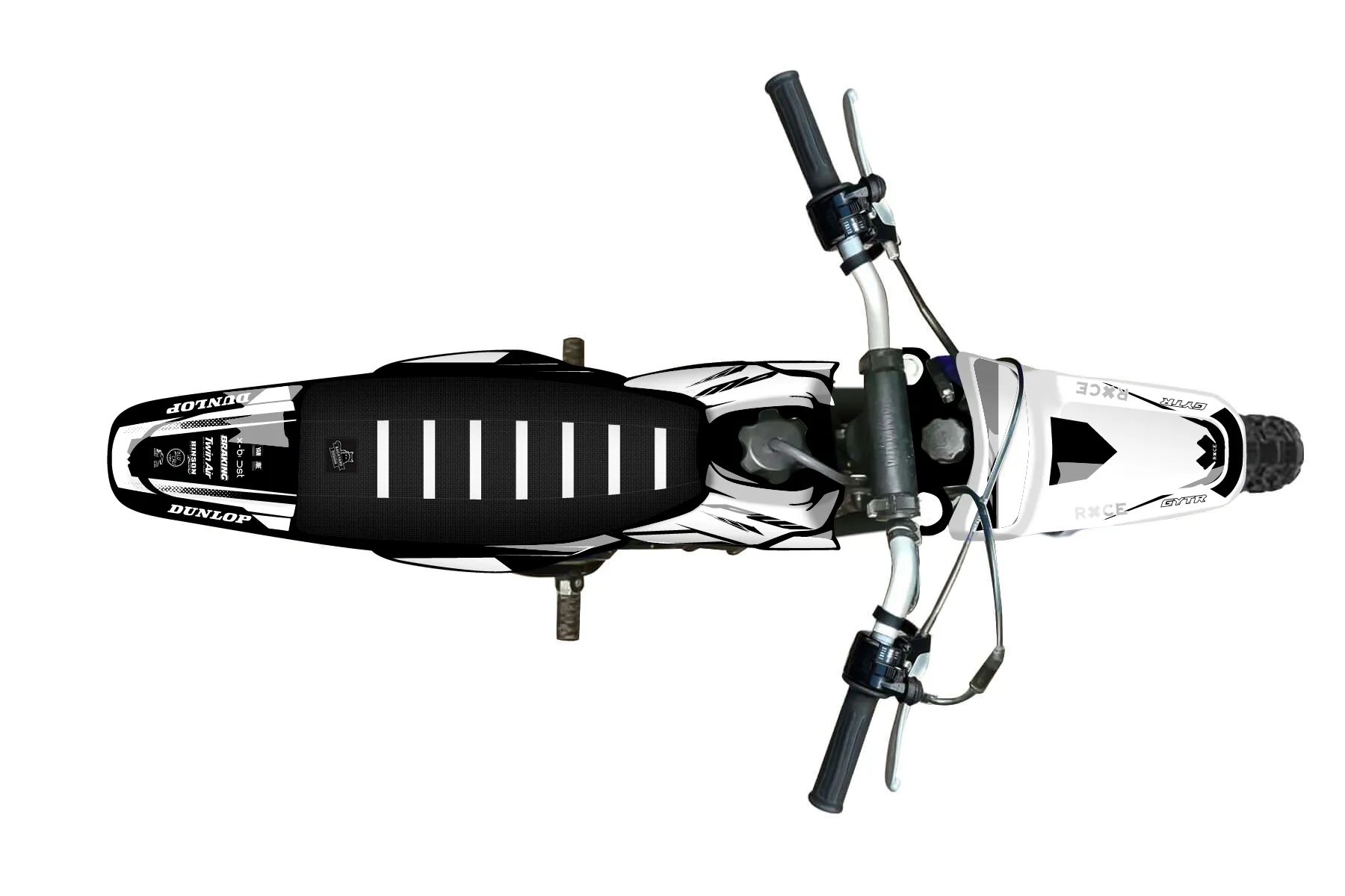 «mason bike» — готовый комплект графики серии Maverick для Yamaha MX Graphic Kit Yamaha PW 50 1996. В комплекте: графика на бак и боковые облицовки, крылья (переднее и заднее), передний щиток, номерные таблички, защита вилки. Материал: ПВХ-винил 80 мкр с холодной ламинацией 300 мкр, общая толщина 380 мкр; покрытие глянцевое или матовое на выбор. Устойчив к UV-излучению, воде, бензину и мойке высокого давления. Клей акриловый на сольвентной основе — постоянный, для гибких пластиков. На простых поверхностях монтируется без нагрева; для сложных изгибов рекомендуем фен. Этот пресет можно заказать как есть или взять за основу в конструкторе: поменять цвета, добавить стартовый номер и свой бренд. Производство — 3–5 рабочих дней, доставка по России СДЭКом или Почтой, по СНГ — курьерскими службами.