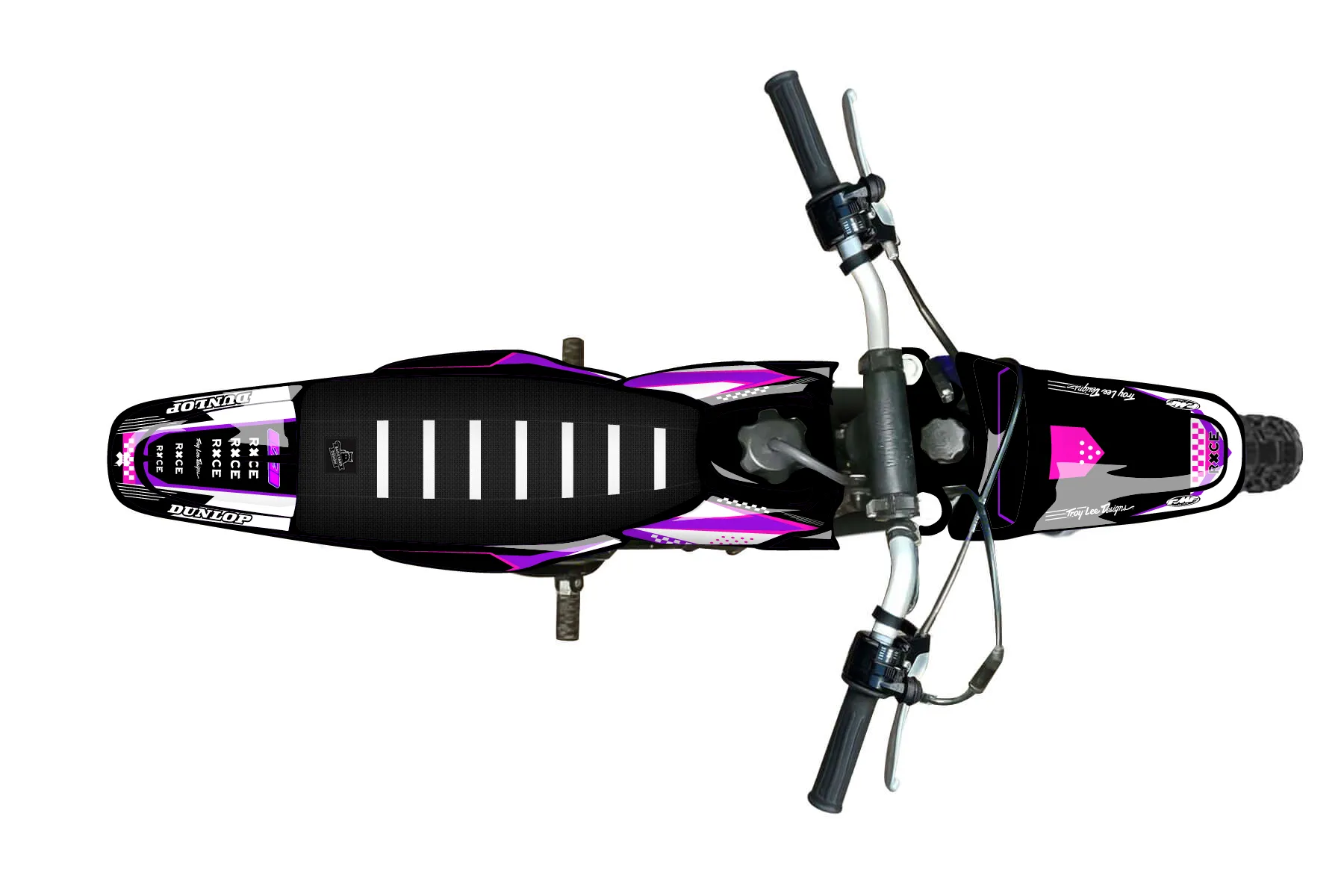 «Kymber PW pink» — готовый комплект графики серии Staple для Yamaha MX Graphic Kit Yamaha PW 50 1996. В комплекте: графика на бак и боковые облицовки, крылья (переднее и заднее), передний щиток, номерные таблички, защита вилки. Материал: ПВХ-винил 80 мкр с холодной ламинацией 300 мкр, общая толщина 380 мкр; покрытие глянцевое или матовое на выбор. Устойчив к UV-излучению, воде, бензину и мойке высокого давления. Клей акриловый на сольвентной основе — постоянный, для гибких пластиков. На простых поверхностях монтируется без нагрева; для сложных изгибов рекомендуем фен. Этот пресет можно заказать как есть или взять за основу в конструкторе: поменять цвета, добавить стартовый номер и свой бренд. Производство — 3–5 рабочих дней, доставка по России СДЭКом или Почтой, по СНГ — курьерскими службами.