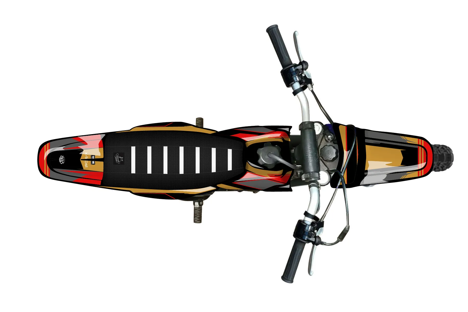 «Jacob 1» — готовый комплект графики серии Untucked для Yamaha MX Graphic Kit Yamaha PW 50 1996. В комплекте: графика на бак и боковые облицовки, крылья (переднее и заднее), передний щиток, номерные таблички, защита вилки. Материал: ПВХ-винил 80 мкр с холодной ламинацией 300 мкр, общая толщина 380 мкр; покрытие глянцевое или матовое на выбор. Устойчив к UV-излучению, воде, бензину и мойке высокого давления. Клей акриловый на сольвентной основе — постоянный, для гибких пластиков. На простых поверхностях монтируется без нагрева; для сложных изгибов рекомендуем фен. Этот пресет можно заказать как есть или взять за основу в конструкторе: поменять цвета, добавить стартовый номер и свой бренд. Производство — 3–5 рабочих дней, доставка по России СДЭКом или Почтой, по СНГ — курьерскими службами.