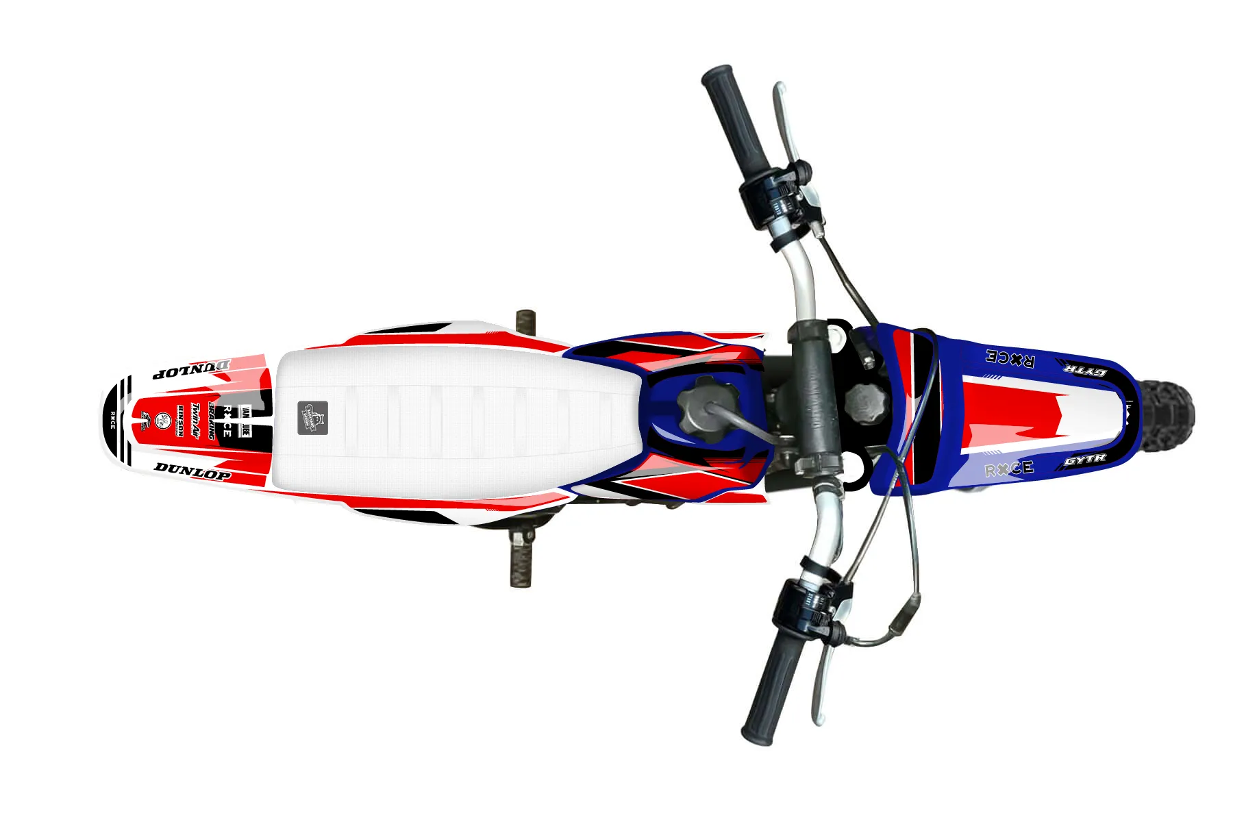 «kaison 1» — готовый комплект графики серии Untucked для Yamaha MX Graphic Kit Yamaha PW 50 1996. В комплекте: графика на бак и боковые облицовки, крылья (переднее и заднее), передний щиток, номерные таблички, защита вилки. Материал: ПВХ-винил 80 мкр с холодной ламинацией 300 мкр, общая толщина 380 мкр; покрытие глянцевое или матовое на выбор. Устойчив к UV-излучению, воде, бензину и мойке высокого давления. Клей акриловый на сольвентной основе — постоянный, для гибких пластиков. На простых поверхностях монтируется без нагрева; для сложных изгибов рекомендуем фен. Этот пресет можно заказать как есть или взять за основу в конструкторе: поменять цвета, добавить стартовый номер и свой бренд. Производство — 3–5 рабочих дней, доставка по России СДЭКом или Почтой, по СНГ — курьерскими службами.