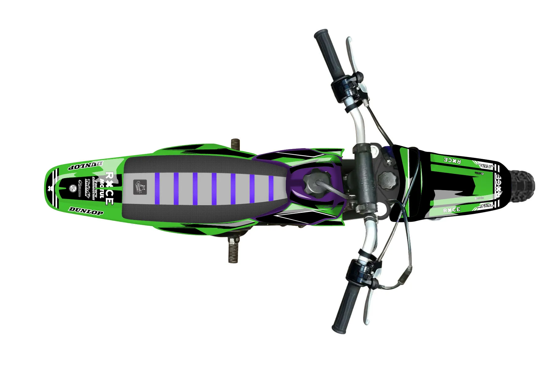 «sabre green pw final» — готовый комплект графики серии Untucked для Yamaha MX Graphic Kit Yamaha PW 50 1996. В комплекте: графика на бак и боковые облицовки, крылья (переднее и заднее), передний щиток, номерные таблички, защита вилки. Материал: ПВХ-винил 80 мкр с холодной ламинацией 300 мкр, общая толщина 380 мкр; покрытие глянцевое или матовое на выбор. Устойчив к UV-излучению, воде, бензину и мойке высокого давления. Клей акриловый на сольвентной основе — постоянный, для гибких пластиков. На простых поверхностях монтируется без нагрева; для сложных изгибов рекомендуем фен. Этот пресет можно заказать как есть или взять за основу в конструкторе: поменять цвета, добавить стартовый номер и свой бренд. Производство — 3–5 рабочих дней, доставка по России СДЭКом или Почтой, по СНГ — курьерскими службами.
