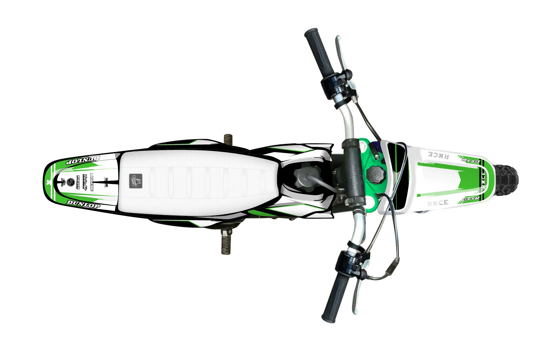«Pw» — готовый комплект графики серии Untucked для Yamaha MX Graphic Kit Yamaha PW 50 2017. В комплекте: графика на бак и боковые облицовки, крылья (переднее и заднее), передний щиток, номерные таблички, защита вилки. Материал: ПВХ-винил 80 мкр с холодной ламинацией 300 мкр, общая толщина 380 мкр; покрытие глянцевое или матовое на выбор. Устойчив к UV-излучению, воде, бензину и мойке высокого давления. Клей акриловый на сольвентной основе — постоянный, для гибких пластиков. На простых поверхностях монтируется без нагрева; для сложных изгибов рекомендуем фен. Этот пресет можно заказать как есть или взять за основу в конструкторе: поменять цвета, добавить стартовый номер и свой бренд. Производство — 3–5 рабочих дней, доставка по России СДЭКом или Почтой, по СНГ — курьерскими службами.
