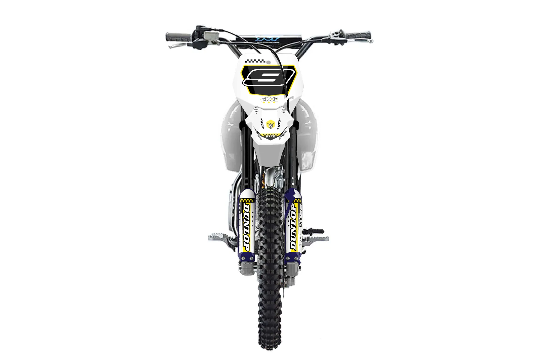 «Throwback» — готовый комплект графики серии Staple для YCF Pitbike Graphic Kit YCF Factory SP2 150 2018. В комплекте: графика на бак и боковые облицовки, крылья (переднее и заднее), передний щиток, номерные таблички, защита вилки. Материал: ПВХ-винил 80 мкр с холодной ламинацией 300 мкр, общая толщина 380 мкр; покрытие глянцевое или матовое на выбор. Устойчив к UV-излучению, воде, бензину и мойке высокого давления. Клей акриловый на сольвентной основе — постоянный, для гибких пластиков. На простых поверхностях монтируется без нагрева; для сложных изгибов рекомендуем фен. Этот пресет можно заказать как есть или взять за основу в конструкторе: поменять цвета, добавить стартовый номер и свой бренд. Производство — 3–5 рабочих дней, доставка по России СДЭКом или Почтой, по СНГ — курьерскими службами.
