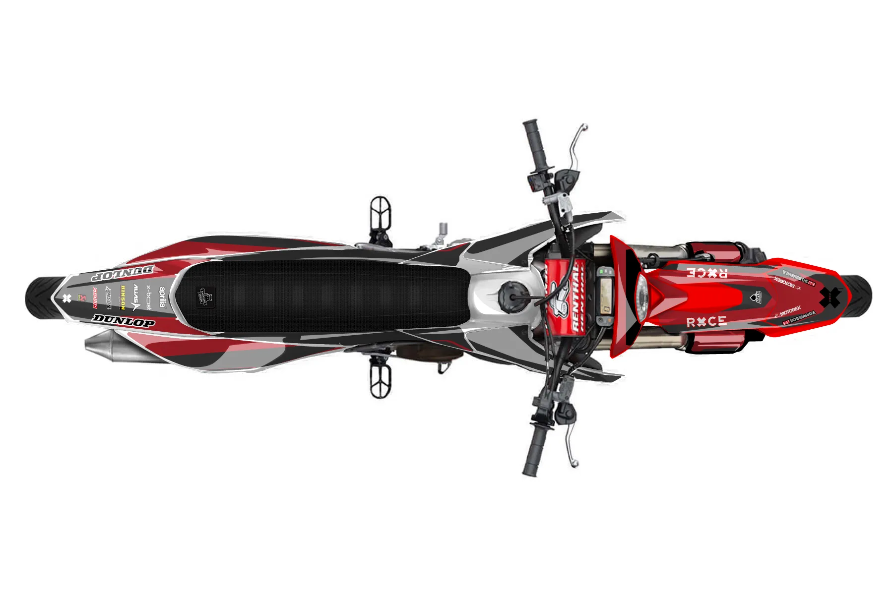 Как правильно наклеить графику«Aprilia SX 125 1» — готовый комплект графики серии Flow для Aprilia MX Graphic Kit Aprilia SX 125 2018. В комплекте: графика на бак и боковые облицовки, крылья (переднее и заднее), передний щиток, номерные таблички, защита вилки. Материал: ПВХ-винил 80 мкр с холодной ламинацией 300 мкр, общая толщина 380 мкр; покрытие глянцевое или матовое на выбор. Устойчив к UV-излучению, воде, бензину и мойке высокого давления. Клей акриловый на сольвентной основе — постоянный, для гибких пластиков. На простых поверхностях монтируется без нагрева; для сложных изгибов рекомендуем фен. Этот пресет можно заказать как есть или взять за основу в конструкторе: поменять цвета, добавить стартовый номер и свой бренд. Производство — 3–5 рабочих дней, доставка по России СДЭКом или Почтой, по СНГ — курьерскими службами.