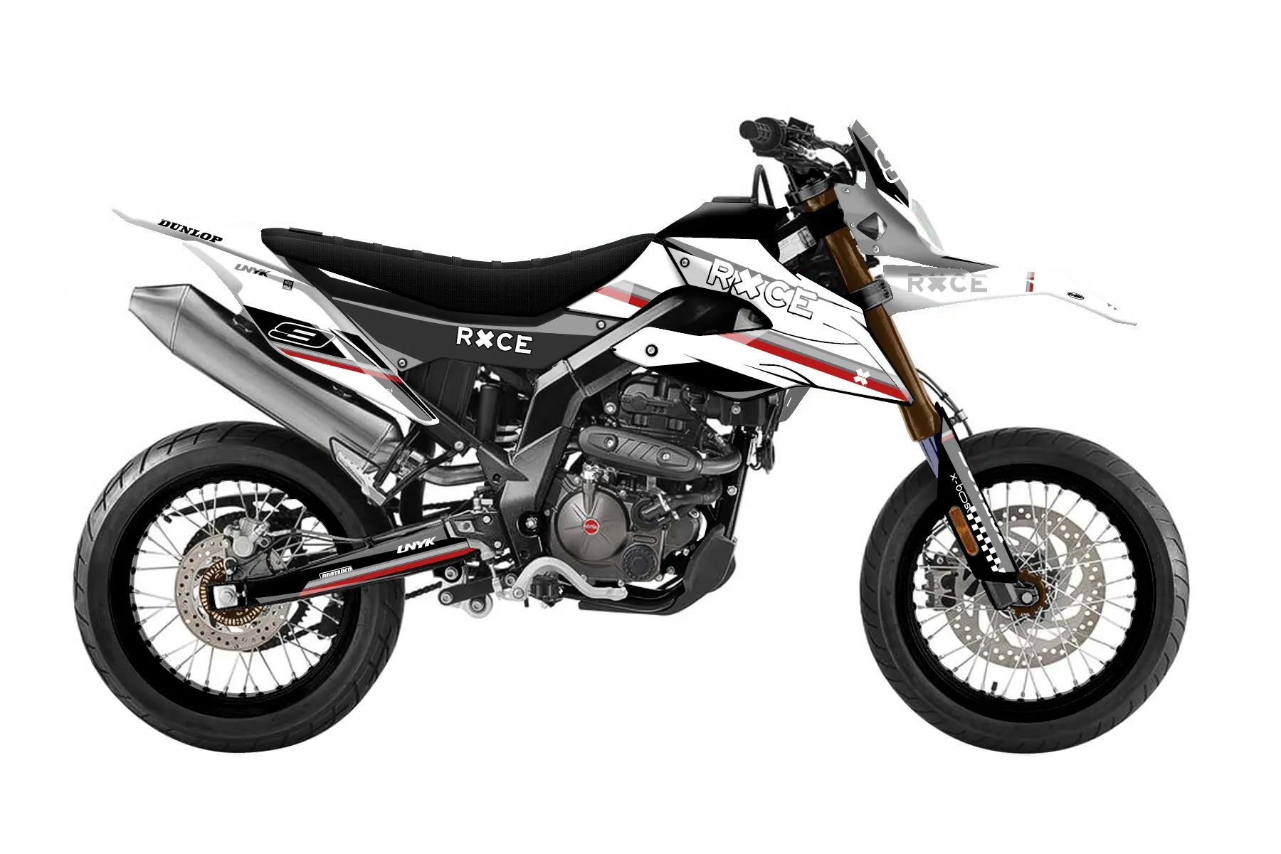 Как правильно наклеить графику«Direction» — готовый комплект графики серии Maverick для Aprilia MX Graphic Kit Aprilia SX 125 2018. В комплекте: графика на бак и боковые облицовки, крылья (переднее и заднее), передний щиток, номерные таблички, защита вилки. Материал: ПВХ-винил 80 мкр с холодной ламинацией 300 мкр, общая толщина 380 мкр; покрытие глянцевое или матовое на выбор. Устойчив к UV-излучению, воде, бензину и мойке высокого давления. Клей акриловый на сольвентной основе — постоянный, для гибких пластиков. На простых поверхностях монтируется без нагрева; для сложных изгибов рекомендуем фен. Этот пресет можно заказать как есть или взять за основу в конструкторе: поменять цвета, добавить стартовый номер и свой бренд. Производство — 3–5 рабочих дней, доставка по России СДЭКом или Почтой, по СНГ — курьерскими службами.