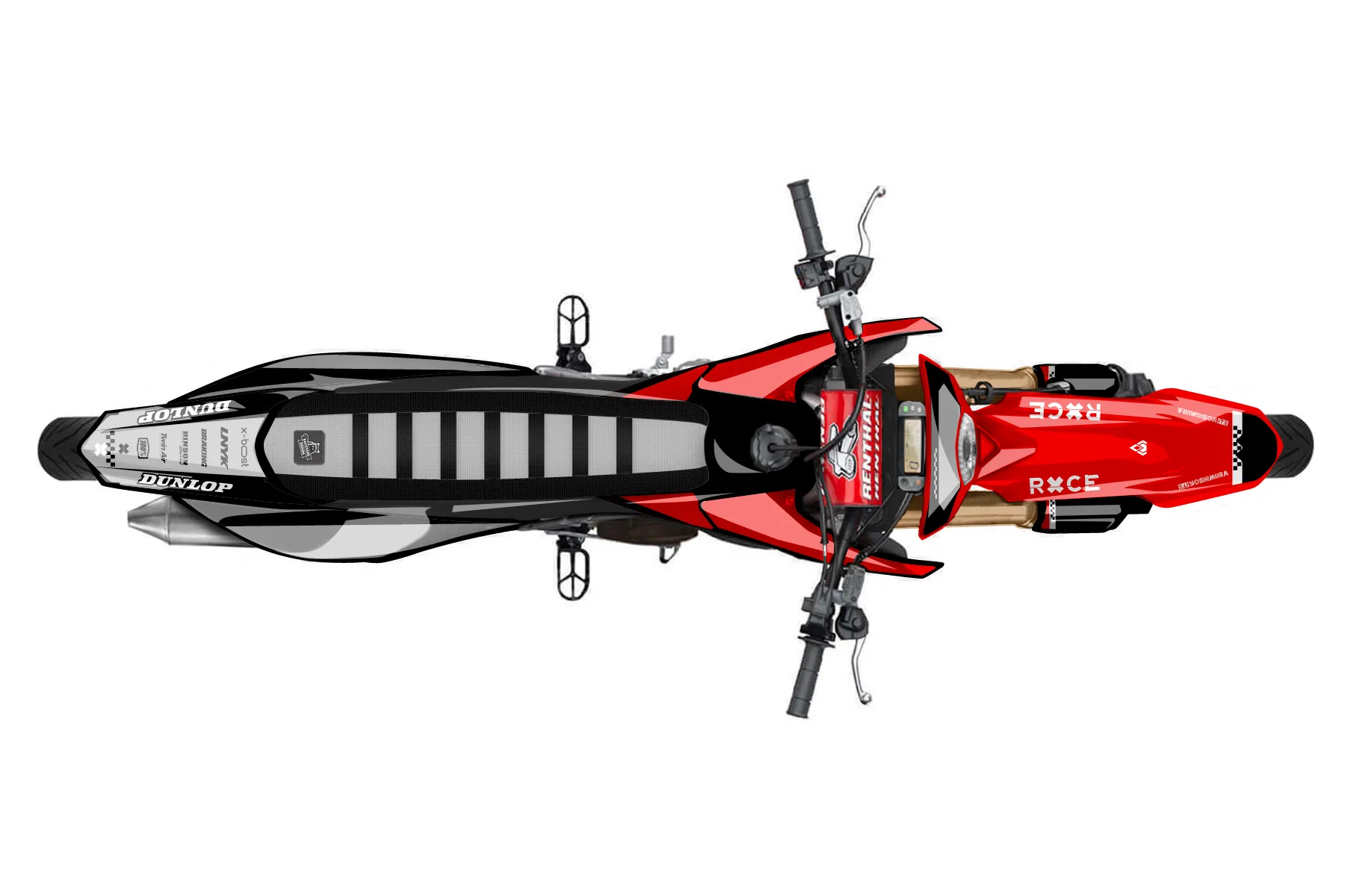 Как правильно наклеить графику«Label» — готовый комплект графики серии Staple для Aprilia MX Graphic Kit Aprilia SX 125 2018. В комплекте: графика на бак и боковые облицовки, крылья (переднее и заднее), передний щиток, номерные таблички, защита вилки. Материал: ПВХ-винил 80 мкр с холодной ламинацией 300 мкр, общая толщина 380 мкр; покрытие глянцевое или матовое на выбор. Устойчив к UV-излучению, воде, бензину и мойке высокого давления. Клей акриловый на сольвентной основе — постоянный, для гибких пластиков. На простых поверхностях монтируется без нагрева; для сложных изгибов рекомендуем фен. Этот пресет можно заказать как есть или взять за основу в конструкторе: поменять цвета, добавить стартовый номер и свой бренд. Производство — 3–5 рабочих дней, доставка по России СДЭКом или Почтой, по СНГ — курьерскими службами.