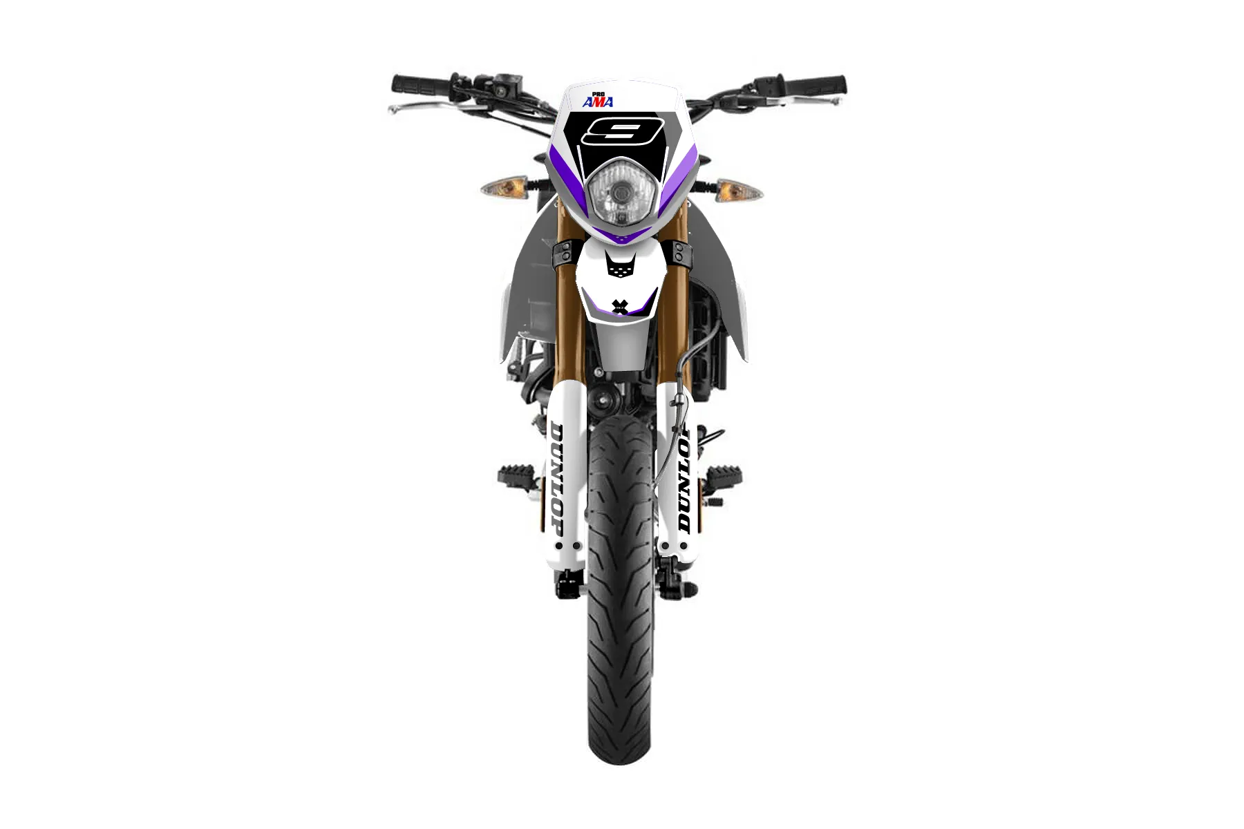 Как правильно наклеить графику«Poto» — готовый комплект графики серии Staple для Aprilia MX Graphic Kit Aprilia SX 125 2018. В комплекте: графика на бак и боковые облицовки, крылья (переднее и заднее), передний щиток, номерные таблички, защита вилки. Материал: ПВХ-винил 80 мкр с холодной ламинацией 300 мкр, общая толщина 380 мкр; покрытие глянцевое или матовое на выбор. Устойчив к UV-излучению, воде, бензину и мойке высокого давления. Клей акриловый на сольвентной основе — постоянный, для гибких пластиков. На простых поверхностях монтируется без нагрева; для сложных изгибов рекомендуем фен. Этот пресет можно заказать как есть или взять за основу в конструкторе: поменять цвета, добавить стартовый номер и свой бренд. Производство — 3–5 рабочих дней, доставка по России СДЭКом или Почтой, по СНГ — курьерскими службами.