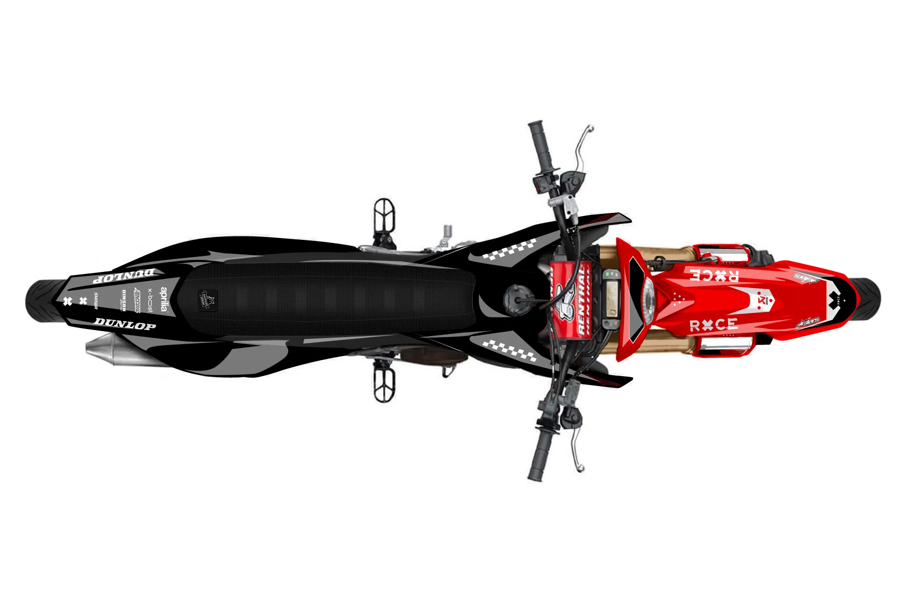 Как правильно наклеить графику«Rage» — готовый комплект графики серии Staple для Aprilia MX Graphic Kit Aprilia SX 125 2018. В комплекте: графика на бак и боковые облицовки, крылья (переднее и заднее), передний щиток, номерные таблички, защита вилки. Материал: ПВХ-винил 80 мкр с холодной ламинацией 300 мкр, общая толщина 380 мкр; покрытие глянцевое или матовое на выбор. Устойчив к UV-излучению, воде, бензину и мойке высокого давления. Клей акриловый на сольвентной основе — постоянный, для гибких пластиков. На простых поверхностях монтируется без нагрева; для сложных изгибов рекомендуем фен. Этот пресет можно заказать как есть или взять за основу в конструкторе: поменять цвета, добавить стартовый номер и свой бренд. Производство — 3–5 рабочих дней, доставка по России СДЭКом или Почтой, по СНГ — курьерскими службами.