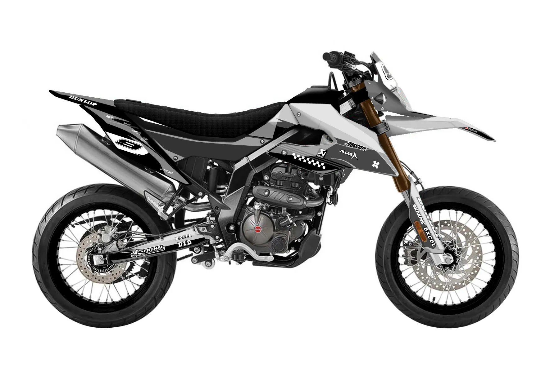 Как правильно наклеить графику«Flying» — готовый комплект графики серии Untucked для Aprilia MX Graphic Kit Aprilia SX 125 2018. В комплекте: графика на бак и боковые облицовки, крылья (переднее и заднее), передний щиток, номерные таблички, защита вилки. Материал: ПВХ-винил 80 мкр с холодной ламинацией 300 мкр, общая толщина 380 мкр; покрытие глянцевое или матовое на выбор. Устойчив к UV-излучению, воде, бензину и мойке высокого давления. Клей акриловый на сольвентной основе — постоянный, для гибких пластиков. На простых поверхностях монтируется без нагрева; для сложных изгибов рекомендуем фен. Этот пресет можно заказать как есть или взять за основу в конструкторе: поменять цвета, добавить стартовый номер и свой бренд. Производство — 3–5 рабочих дней, доставка по России СДЭКом или Почтой, по СНГ — курьерскими службами.