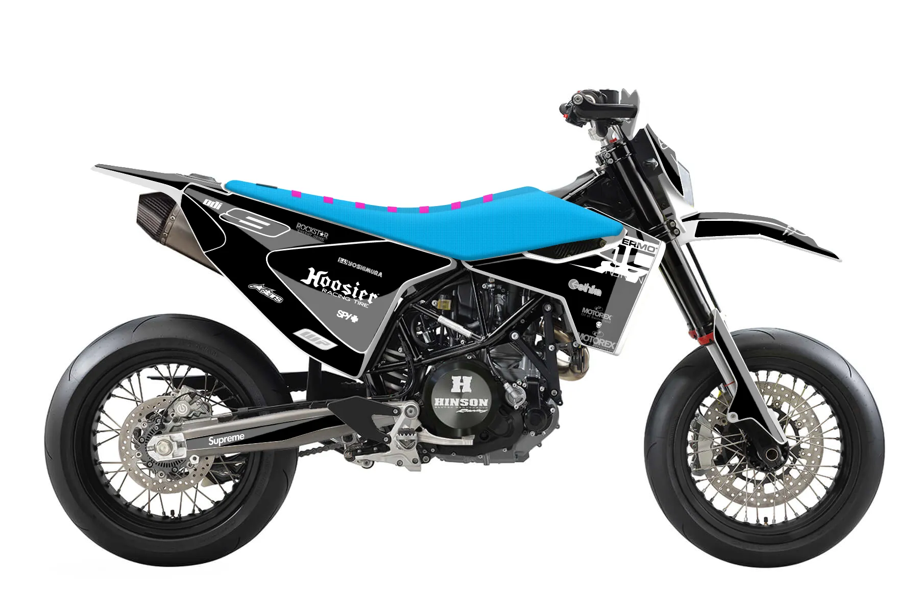 Как правильно наклеить графику«black swirl» — готовый комплект графики серии Flow для Husqvarna Street Graphic Kit Husqvarna 701 2015. В комплекте: графика на бак и боковые облицовки, крылья (переднее и заднее), передний щиток, номерные таблички, защита вилки. Материал: ПВХ-винил 80 мкр с холодной ламинацией 300 мкр, общая толщина 380 мкр; покрытие глянцевое или матовое на выбор. Устойчив к UV-излучению, воде, бензину и мойке высокого давления. Клей акриловый на сольвентной основе — постоянный, для гибких пластиков. На простых поверхностях монтируется без нагрева; для сложных изгибов рекомендуем фен. Этот пресет можно заказать как есть или взять за основу в конструкторе: поменять цвета, добавить стартовый номер и свой бренд. Производство — 3–5 рабочих дней, доставка по России СДЭКом или Почтой, по СНГ — курьерскими службами.