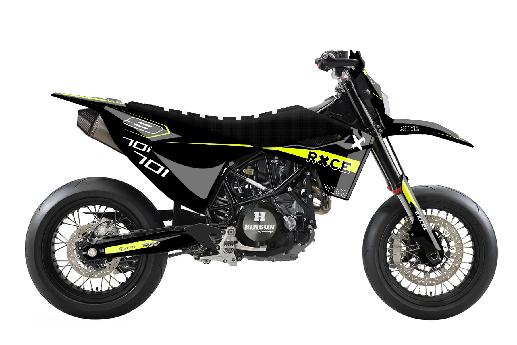 Как правильно наклеить графику«Kitted Neon» — готовый комплект графики серии Flow для Husqvarna Street Graphic Kit Husqvarna 701 2015. В комплекте: графика на бак и боковые облицовки, крылья (переднее и заднее), передний щиток, номерные таблички, защита вилки. Материал: ПВХ-винил 80 мкр с холодной ламинацией 300 мкр, общая толщина 380 мкр; покрытие глянцевое или матовое на выбор. Устойчив к UV-излучению, воде, бензину и мойке высокого давления. Клей акриловый на сольвентной основе — постоянный, для гибких пластиков. На простых поверхностях монтируется без нагрева; для сложных изгибов рекомендуем фен. Этот пресет можно заказать как есть или взять за основу в конструкторе: поменять цвета, добавить стартовый номер и свой бренд. Производство — 3–5 рабочих дней, доставка по России СДЭКом или Почтой, по СНГ — курьерскими службами.