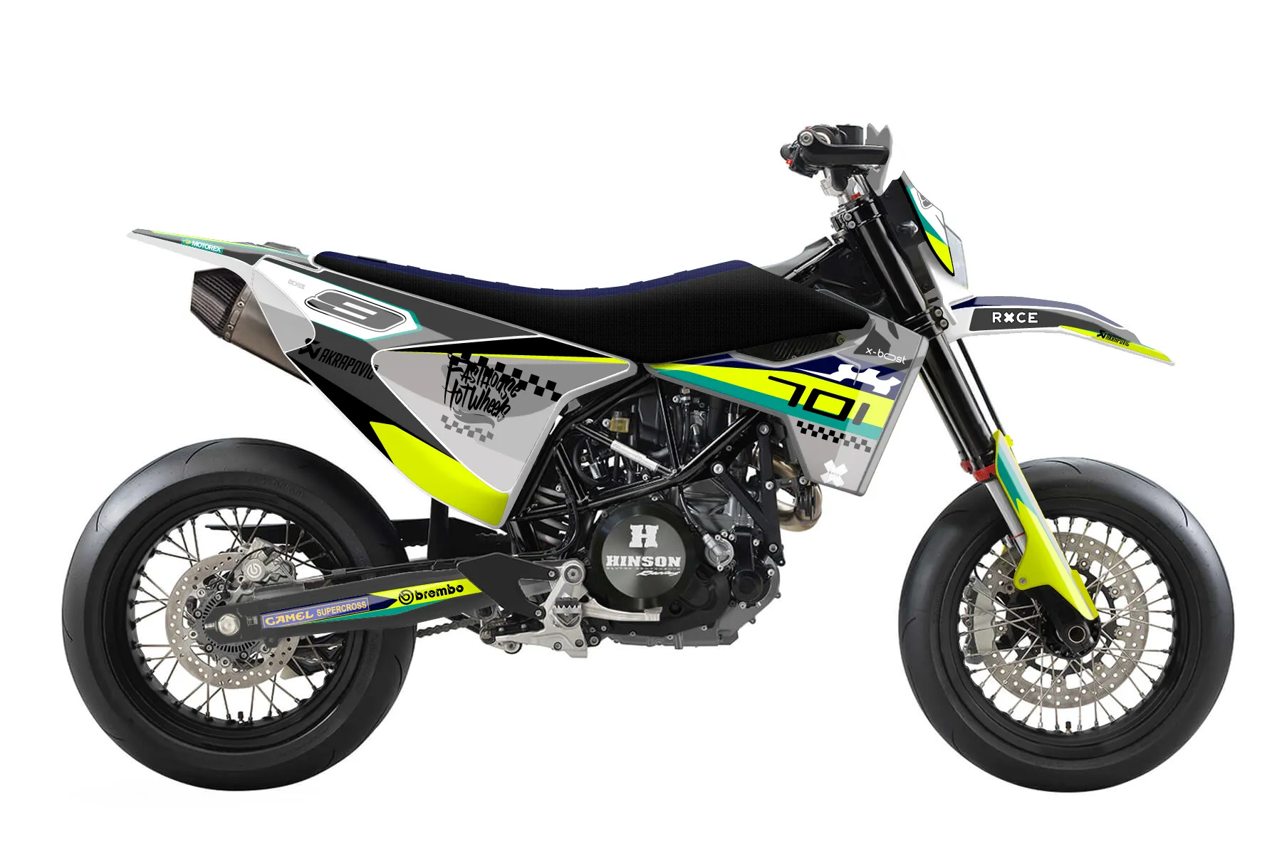 Как правильно наклеить графику«Still testing color ways» — готовый комплект графики серии Flow для Husqvarna Street Graphic Kit Husqvarna 701 2015. В комплекте: графика на бак и боковые облицовки, крылья (переднее и заднее), передний щиток, номерные таблички, защита вилки. Материал: ПВХ-винил 80 мкр с холодной ламинацией 300 мкр, общая толщина 380 мкр; покрытие глянцевое или матовое на выбор. Устойчив к UV-излучению, воде, бензину и мойке высокого давления. Клей акриловый на сольвентной основе — постоянный, для гибких пластиков. На простых поверхностях монтируется без нагрева; для сложных изгибов рекомендуем фен. Этот пресет можно заказать как есть или взять за основу в конструкторе: поменять цвета, добавить стартовый номер и свой бренд. Производство — 3–5 рабочих дней, доставка по России СДЭКом или Почтой, по СНГ — курьерскими службами.