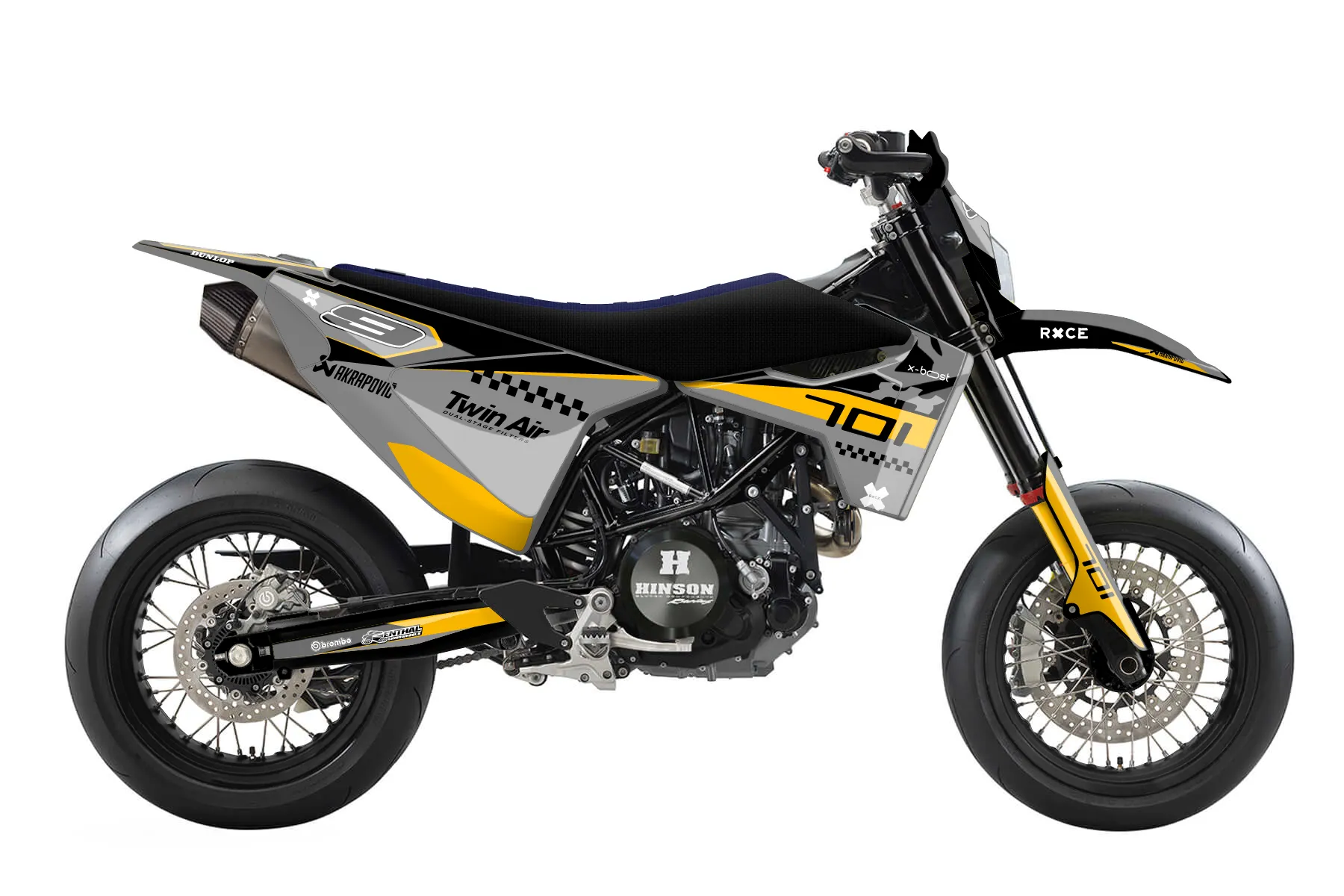 Как правильно наклеить графику«Unmatched» — готовый комплект графики серии Flow для Husqvarna Street Graphic Kit Husqvarna 701 2015. В комплекте: графика на бак и боковые облицовки, крылья (переднее и заднее), передний щиток, номерные таблички, защита вилки. Материал: ПВХ-винил 80 мкр с холодной ламинацией 300 мкр, общая толщина 380 мкр; покрытие глянцевое или матовое на выбор. Устойчив к UV-излучению, воде, бензину и мойке высокого давления. Клей акриловый на сольвентной основе — постоянный, для гибких пластиков. На простых поверхностях монтируется без нагрева; для сложных изгибов рекомендуем фен. Этот пресет можно заказать как есть или взять за основу в конструкторе: поменять цвета, добавить стартовый номер и свой бренд. Производство — 3–5 рабочих дней, доставка по России СДЭКом или Почтой, по СНГ — курьерскими службами.