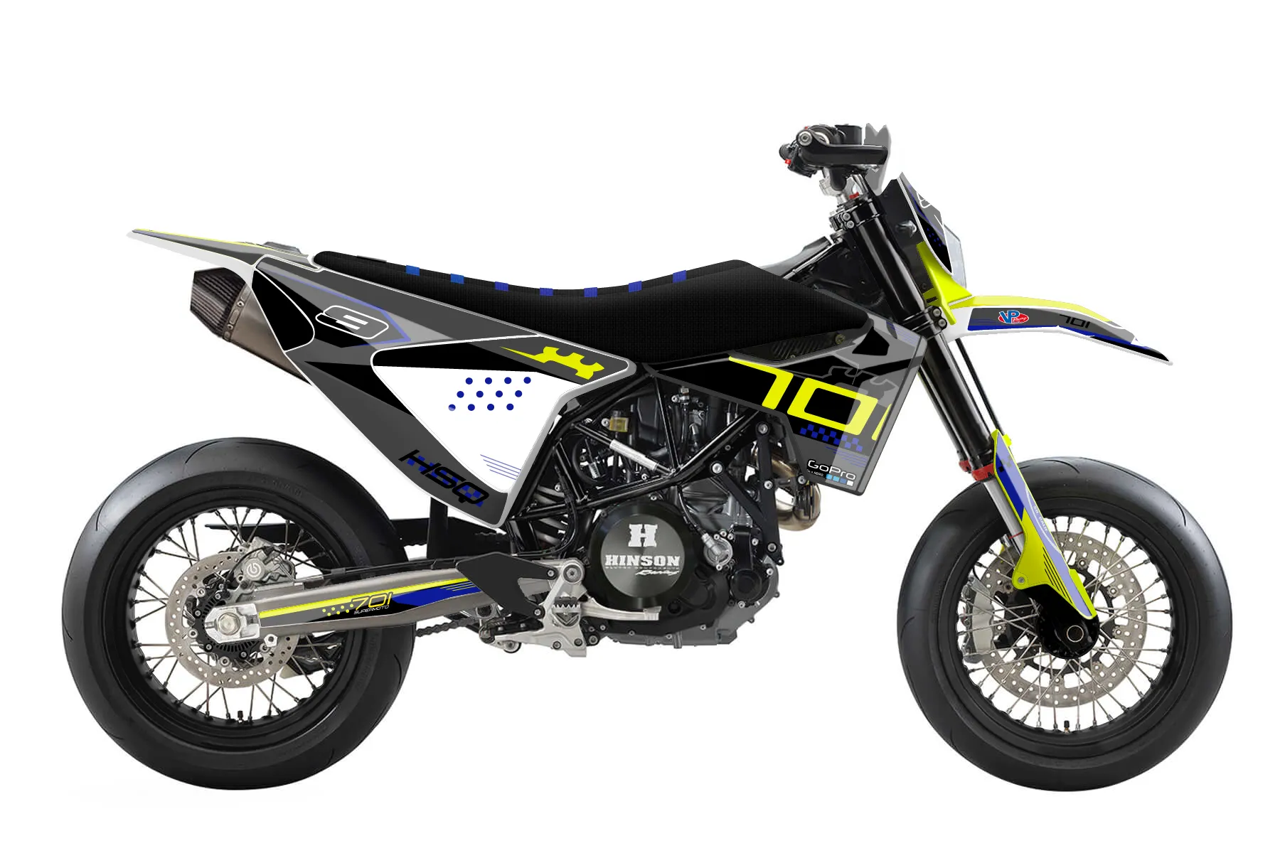 Как правильно наклеить графику«701 2020» — готовый комплект графики серии Staple для Husqvarna Street Graphic Kit Husqvarna 701 2015. В комплекте: графика на бак и боковые облицовки, крылья (переднее и заднее), передний щиток, номерные таблички, защита вилки. Материал: ПВХ-винил 80 мкр с холодной ламинацией 300 мкр, общая толщина 380 мкр; покрытие глянцевое или матовое на выбор. Устойчив к UV-излучению, воде, бензину и мойке высокого давления. Клей акриловый на сольвентной основе — постоянный, для гибких пластиков. На простых поверхностях монтируется без нагрева; для сложных изгибов рекомендуем фен. Этот пресет можно заказать как есть или взять за основу в конструкторе: поменять цвета, добавить стартовый номер и свой бренд. Производство — 3–5 рабочих дней, доставка по России СДЭКом или Почтой, по СНГ — курьерскими службами.