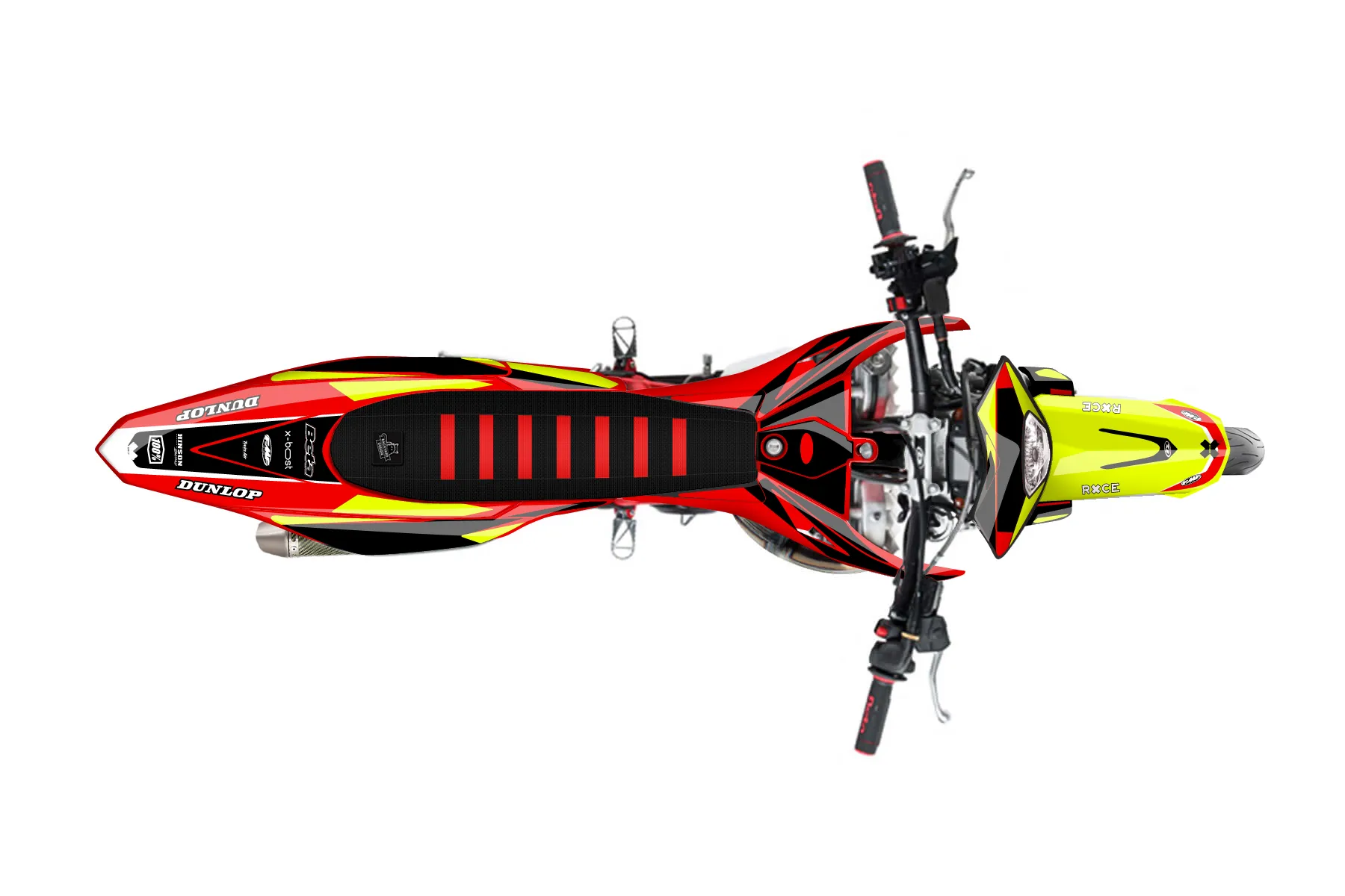 «Brilliant Neon» — готовый комплект графики серии Flow для Beta Enduro Graphic Kit Beta RR 300 (Kopie) (Kopie) 2011. В комплекте: графика на бак и боковые облицовки, крылья (переднее и заднее), передний щиток, номерные таблички, защита вилки. Материал: ПВХ-винил 80 мкр с холодной ламинацией 300 мкр, общая толщина 380 мкр; покрытие глянцевое или матовое на выбор. Устойчив к UV-излучению, воде, бензину и мойке высокого давления. Клей акриловый на сольвентной основе — постоянный, для гибких пластиков. На простых поверхностях монтируется без нагрева; для сложных изгибов рекомендуем фен. Этот пресет можно заказать как есть или взять за основу в конструкторе: поменять цвета, добавить стартовый номер и свой бренд. Производство — 3–5 рабочих дней, доставка по России СДЭКом или Почтой, по СНГ — курьерскими службами.