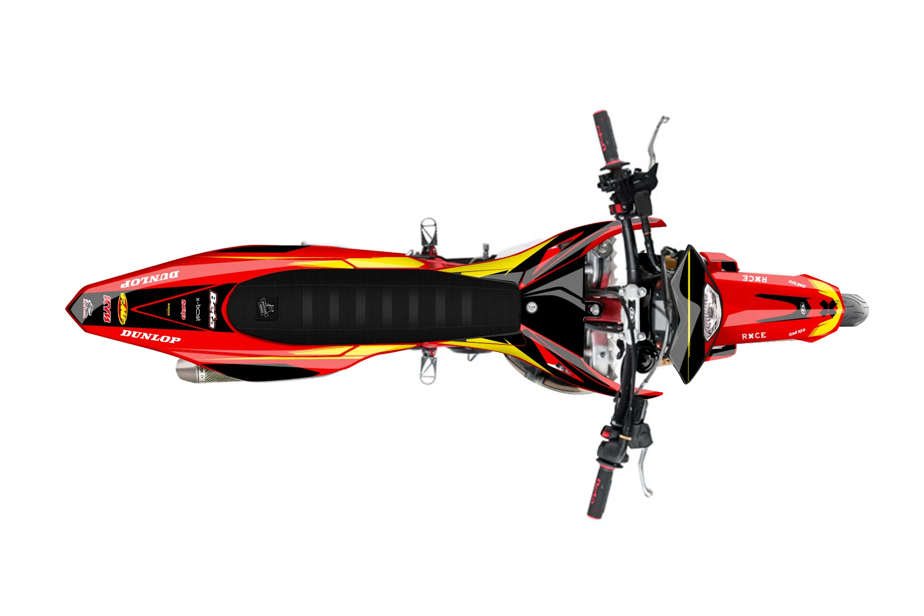 «DeCore» — готовый комплект графики серии Untucked для Beta Enduro Graphic Kit Beta RR 300 (Kopie) (Kopie) 2011. В комплекте: графика на бак и боковые облицовки, крылья (переднее и заднее), передний щиток, номерные таблички, защита вилки. Материал: ПВХ-винил 80 мкр с холодной ламинацией 300 мкр, общая толщина 380 мкр; покрытие глянцевое или матовое на выбор. Устойчив к UV-излучению, воде, бензину и мойке высокого давления. Клей акриловый на сольвентной основе — постоянный, для гибких пластиков. На простых поверхностях монтируется без нагрева; для сложных изгибов рекомендуем фен. Этот пресет можно заказать как есть или взять за основу в конструкторе: поменять цвета, добавить стартовый номер и свой бренд. Производство — 3–5 рабочих дней, доставка по России СДЭКом или Почтой, по СНГ — курьерскими службами.