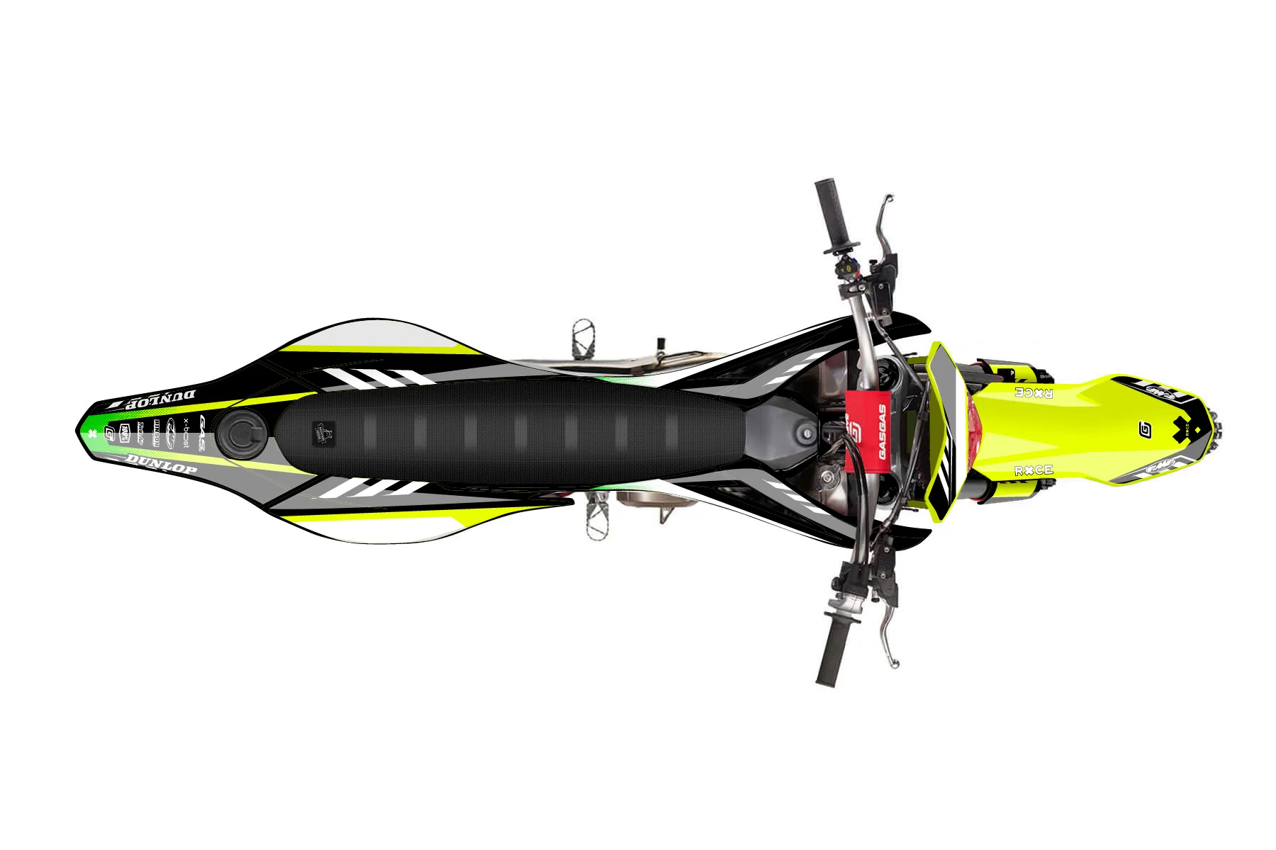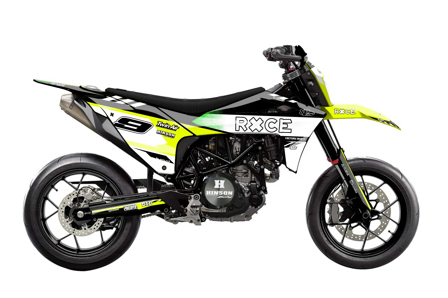 «Bright Neon» — готовый комплект графики серии Maverick для GasGas Supermoto Dekor GasGas 700 2023. В комплекте: графика на бак и боковые облицовки, крылья (переднее и заднее), передний щиток, номерные таблички, защита вилки. Материал: ПВХ-винил 80 мкр с холодной ламинацией 300 мкр, общая толщина 380 мкр; покрытие глянцевое или матовое на выбор. Устойчив к UV-излучению, воде, бензину и мойке высокого давления. Клей акриловый на сольвентной основе — постоянный, для гибких пластиков. На простых поверхностях монтируется без нагрева; для сложных изгибов рекомендуем фен. Этот пресет можно заказать как есть или взять за основу в конструкторе: поменять цвета, добавить стартовый номер и свой бренд. Производство — 3–5 рабочих дней, доставка по России СДЭКом или Почтой, по СНГ — курьерскими службами.