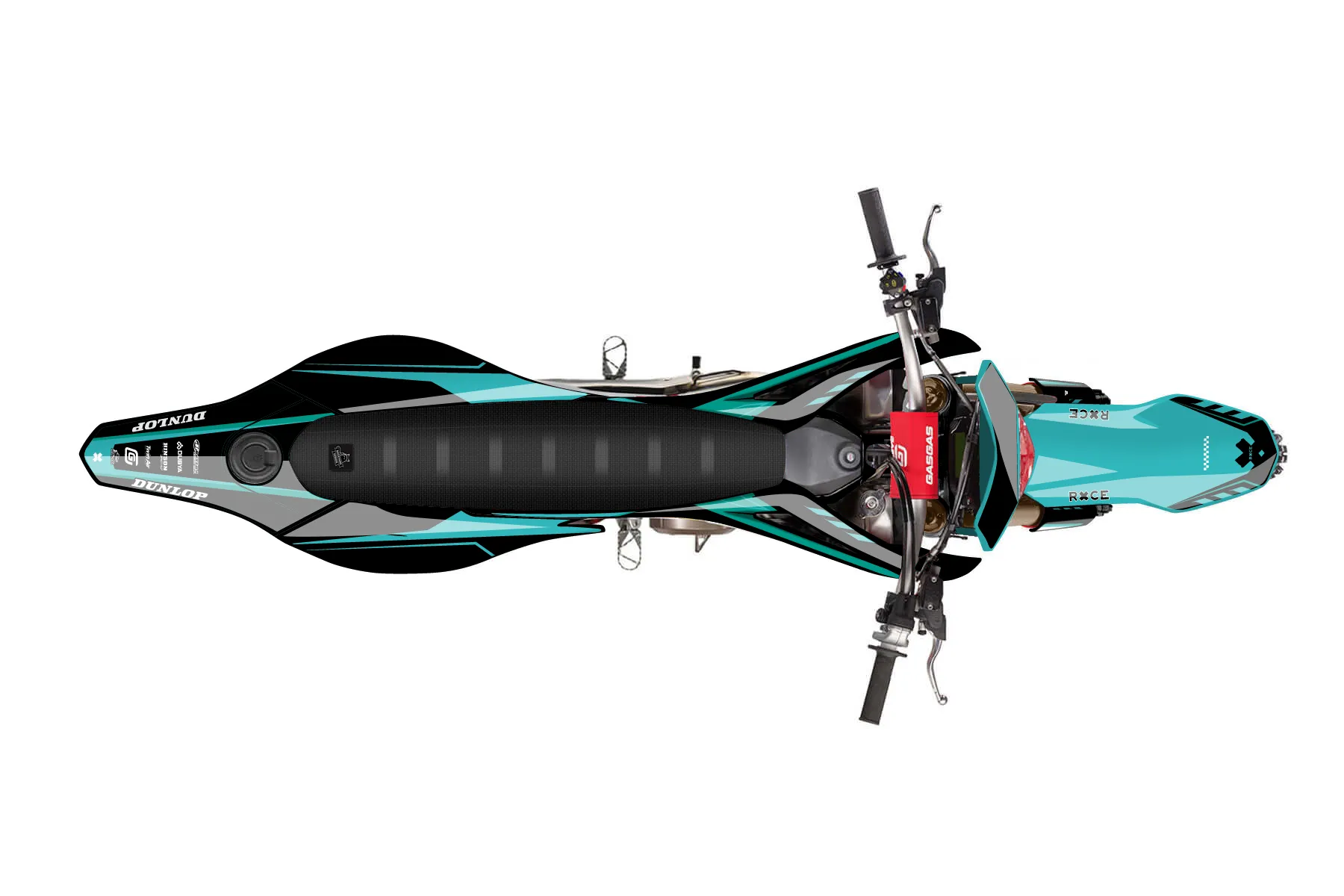 «Stamp» — готовый комплект графики серии Maverick для GasGas Supermoto Dekor GasGas 700 2023. В комплекте: графика на бак и боковые облицовки, крылья (переднее и заднее), передний щиток, номерные таблички, защита вилки. Материал: ПВХ-винил 80 мкр с холодной ламинацией 300 мкр, общая толщина 380 мкр; покрытие глянцевое или матовое на выбор. Устойчив к UV-излучению, воде, бензину и мойке высокого давления. Клей акриловый на сольвентной основе — постоянный, для гибких пластиков. На простых поверхностях монтируется без нагрева; для сложных изгибов рекомендуем фен. Этот пресет можно заказать как есть или взять за основу в конструкторе: поменять цвета, добавить стартовый номер и свой бренд. Производство — 3–5 рабочих дней, доставка по России СДЭКом или Почтой, по СНГ — курьерскими службами.