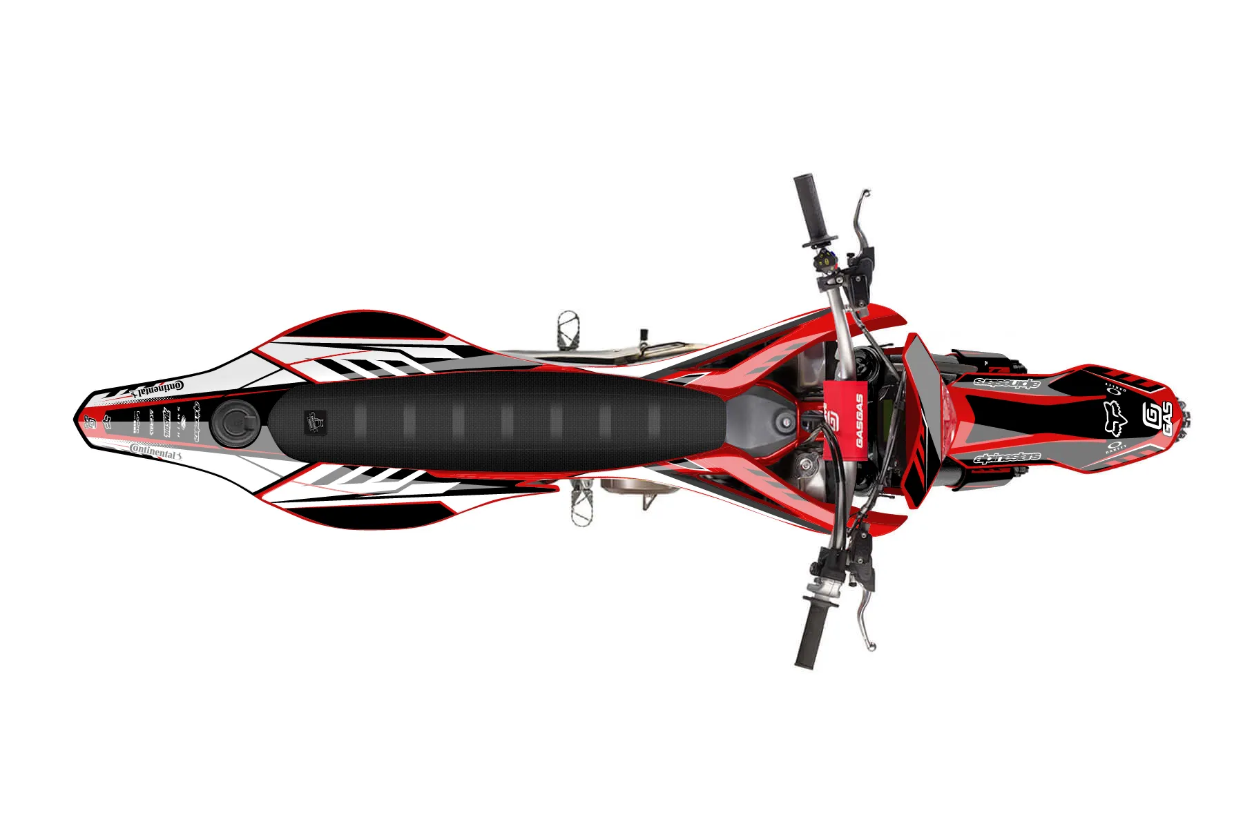 «White and Black Rear» — готовый комплект графики серии Maverick для GasGas Supermoto Dekor GasGas 700 2023. В комплекте: графика на бак и боковые облицовки, крылья (переднее и заднее), передний щиток, номерные таблички, защита вилки. Материал: ПВХ-винил 80 мкр с холодной ламинацией 300 мкр, общая толщина 380 мкр; покрытие глянцевое или матовое на выбор. Устойчив к UV-излучению, воде, бензину и мойке высокого давления. Клей акриловый на сольвентной основе — постоянный, для гибких пластиков. На простых поверхностях монтируется без нагрева; для сложных изгибов рекомендуем фен. Этот пресет можно заказать как есть или взять за основу в конструкторе: поменять цвета, добавить стартовый номер и свой бренд. Производство — 3–5 рабочих дней, доставка по России СДЭКом или Почтой, по СНГ — курьерскими службами.