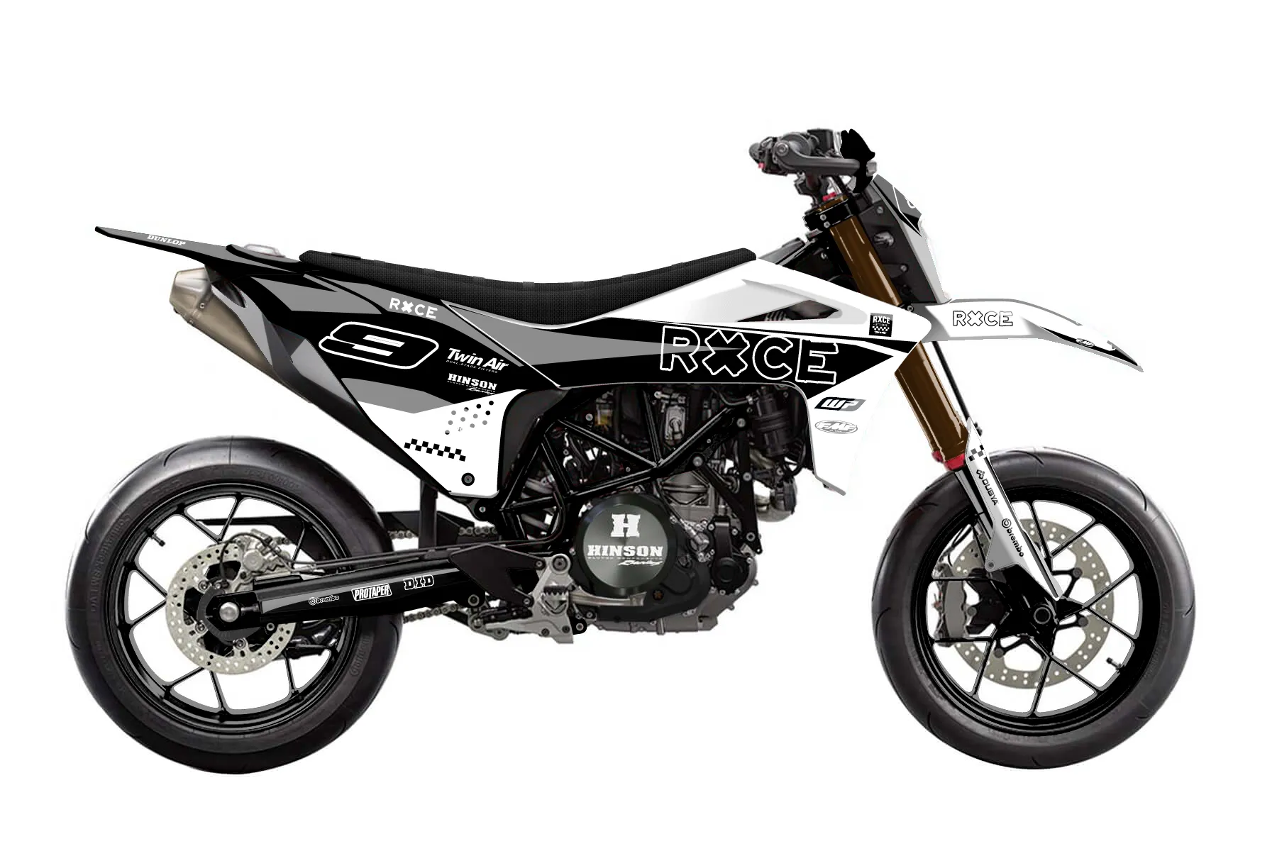 «Answer» — готовый комплект графики серии Staple для GasGas Supermoto Dekor GasGas 700 2023. В комплекте: графика на бак и боковые облицовки, крылья (переднее и заднее), передний щиток, номерные таблички, защита вилки. Материал: ПВХ-винил 80 мкр с холодной ламинацией 300 мкр, общая толщина 380 мкр; покрытие глянцевое или матовое на выбор. Устойчив к UV-излучению, воде, бензину и мойке высокого давления. Клей акриловый на сольвентной основе — постоянный, для гибких пластиков. На простых поверхностях монтируется без нагрева; для сложных изгибов рекомендуем фен. Этот пресет можно заказать как есть или взять за основу в конструкторе: поменять цвета, добавить стартовый номер и свой бренд. Производство — 3–5 рабочих дней, доставка по России СДЭКом или Почтой, по СНГ — курьерскими службами.