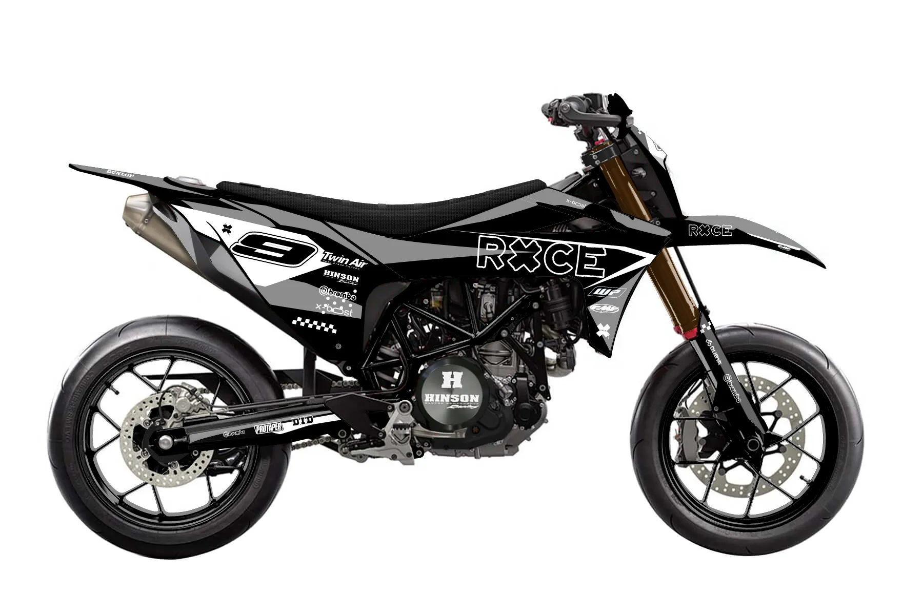 «Visonary» — готовый комплект графики серии Staple для GasGas Supermoto Dekor GasGas 700 2023. В комплекте: графика на бак и боковые облицовки, крылья (переднее и заднее), передний щиток, номерные таблички, защита вилки. Материал: ПВХ-винил 80 мкр с холодной ламинацией 300 мкр, общая толщина 380 мкр; покрытие глянцевое или матовое на выбор. Устойчив к UV-излучению, воде, бензину и мойке высокого давления. Клей акриловый на сольвентной основе — постоянный, для гибких пластиков. На простых поверхностях монтируется без нагрева; для сложных изгибов рекомендуем фен. Этот пресет можно заказать как есть или взять за основу в конструкторе: поменять цвета, добавить стартовый номер и свой бренд. Производство — 3–5 рабочих дней, доставка по России СДЭКом или Почтой, по СНГ — курьерскими службами.