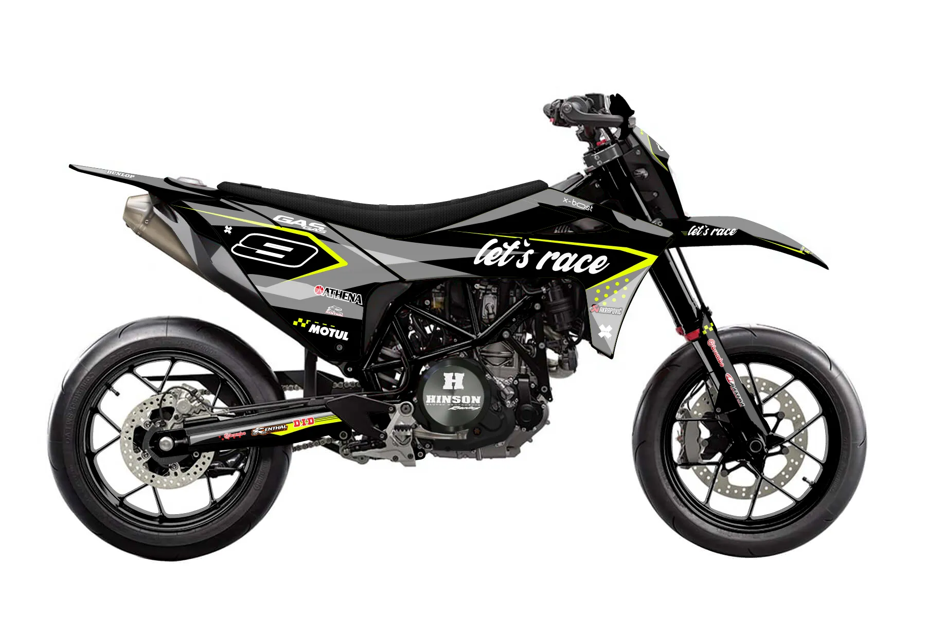 «Worx» — готовый комплект графики серии Staple для GasGas Supermoto Dekor GasGas 700 2023. В комплекте: графика на бак и боковые облицовки, крылья (переднее и заднее), передний щиток, номерные таблички, защита вилки. Материал: ПВХ-винил 80 мкр с холодной ламинацией 300 мкр, общая толщина 380 мкр; покрытие глянцевое или матовое на выбор. Устойчив к UV-излучению, воде, бензину и мойке высокого давления. Клей акриловый на сольвентной основе — постоянный, для гибких пластиков. На простых поверхностях монтируется без нагрева; для сложных изгибов рекомендуем фен. Этот пресет можно заказать как есть или взять за основу в конструкторе: поменять цвета, добавить стартовый номер и свой бренд. Производство — 3–5 рабочих дней, доставка по России СДЭКом или Почтой, по СНГ — курьерскими службами.