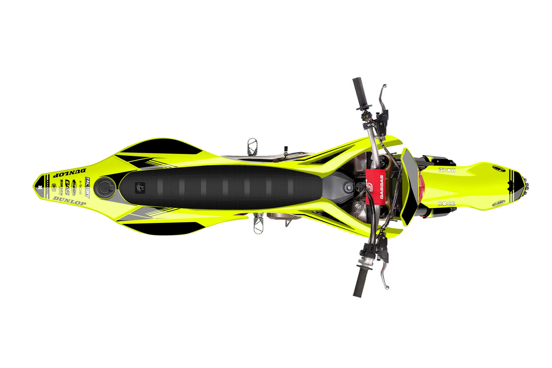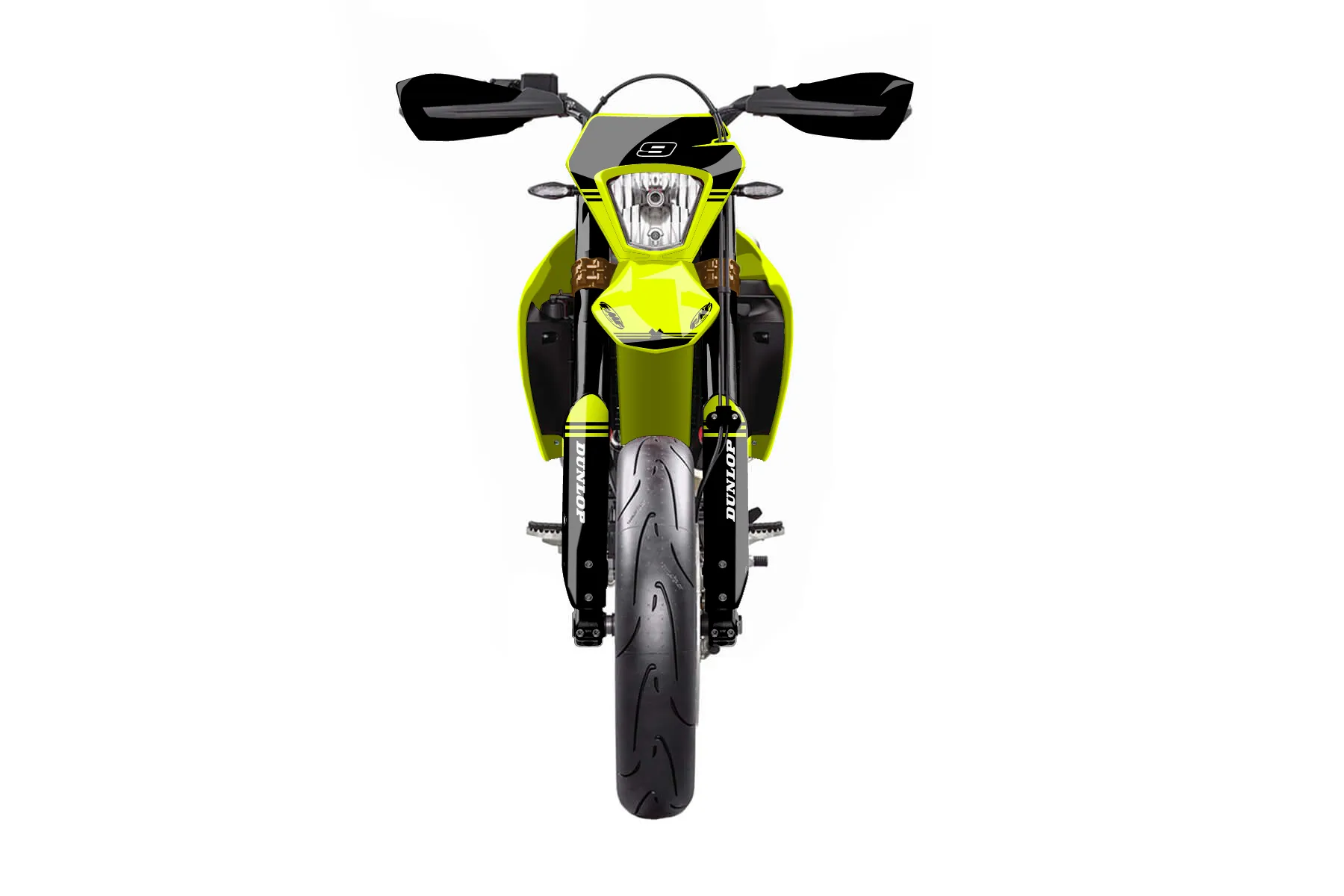«Lusty Neon» — готовый комплект графики серии Untucked для GasGas Supermoto Dekor GasGas 700 2023. В комплекте: графика на бак и боковые облицовки, крылья (переднее и заднее), передний щиток, номерные таблички, защита вилки. Материал: ПВХ-винил 80 мкр с холодной ламинацией 300 мкр, общая толщина 380 мкр; покрытие глянцевое или матовое на выбор. Устойчив к UV-излучению, воде, бензину и мойке высокого давления. Клей акриловый на сольвентной основе — постоянный, для гибких пластиков. На простых поверхностях монтируется без нагрева; для сложных изгибов рекомендуем фен. Этот пресет можно заказать как есть или взять за основу в конструкторе: поменять цвета, добавить стартовый номер и свой бренд. Производство — 3–5 рабочих дней, доставка по России СДЭКом или Почтой, по СНГ — курьерскими службами.