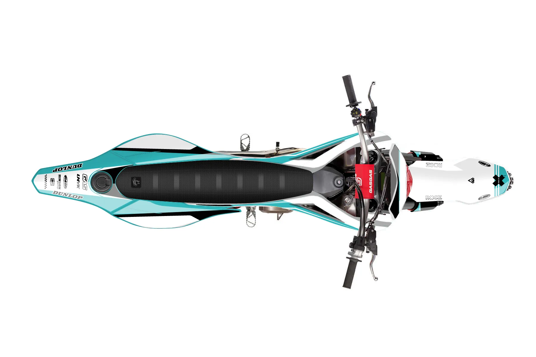 «Virtual» — готовый комплект графики серии Untucked для GasGas Supermoto Dekor GasGas 700 2023. В комплекте: графика на бак и боковые облицовки, крылья (переднее и заднее), передний щиток, номерные таблички, защита вилки. Материал: ПВХ-винил 80 мкр с холодной ламинацией 300 мкр, общая толщина 380 мкр; покрытие глянцевое или матовое на выбор. Устойчив к UV-излучению, воде, бензину и мойке высокого давления. Клей акриловый на сольвентной основе — постоянный, для гибких пластиков. На простых поверхностях монтируется без нагрева; для сложных изгибов рекомендуем фен. Этот пресет можно заказать как есть или взять за основу в конструкторе: поменять цвета, добавить стартовый номер и свой бренд. Производство — 3–5 рабочих дней, доставка по России СДЭКом или Почтой, по СНГ — курьерскими службами.