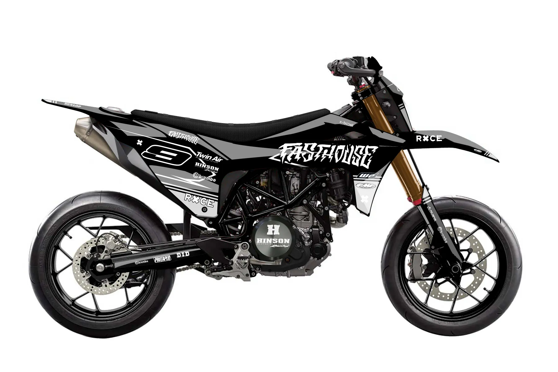 «Zebra» — готовый комплект графики серии Untucked для GasGas Supermoto Dekor GasGas 700 2023. В комплекте: графика на бак и боковые облицовки, крылья (переднее и заднее), передний щиток, номерные таблички, защита вилки. Материал: ПВХ-винил 80 мкр с холодной ламинацией 300 мкр, общая толщина 380 мкр; покрытие глянцевое или матовое на выбор. Устойчив к UV-излучению, воде, бензину и мойке высокого давления. Клей акриловый на сольвентной основе — постоянный, для гибких пластиков. На простых поверхностях монтируется без нагрева; для сложных изгибов рекомендуем фен. Этот пресет можно заказать как есть или взять за основу в конструкторе: поменять цвета, добавить стартовый номер и свой бренд. Производство — 3–5 рабочих дней, доставка по России СДЭКом или Почтой, по СНГ — курьерскими службами.