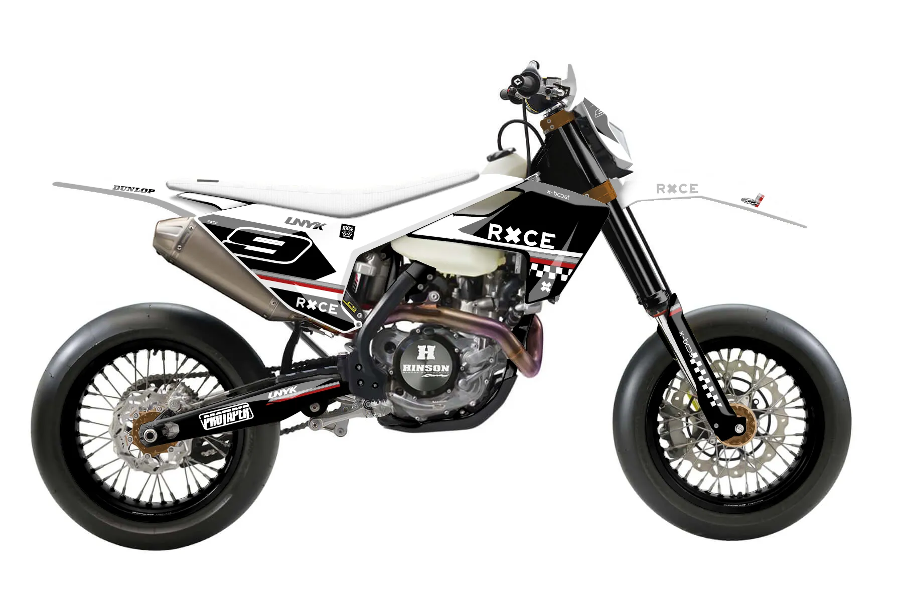 «Direction» — готовый комплект графики серии Maverick для Husqvarna Supermoto Graphic Kit Husqvarna FE 250 2017. В комплекте: графика на бак и боковые облицовки, крылья (переднее и заднее), передний щиток, номерные таблички, защита вилки. Материал: ПВХ-винил 80 мкр с холодной ламинацией 300 мкр, общая толщина 380 мкр; покрытие глянцевое или матовое на выбор. Устойчив к UV-излучению, воде, бензину и мойке высокого давления. Клей акриловый на сольвентной основе — постоянный, для гибких пластиков. На простых поверхностях монтируется без нагрева; для сложных изгибов рекомендуем фен. Этот пресет можно заказать как есть или взять за основу в конструкторе: поменять цвета, добавить стартовый номер и свой бренд. Производство — 3–5 рабочих дней, доставка по России СДЭКом или Почтой, по СНГ — курьерскими службами.