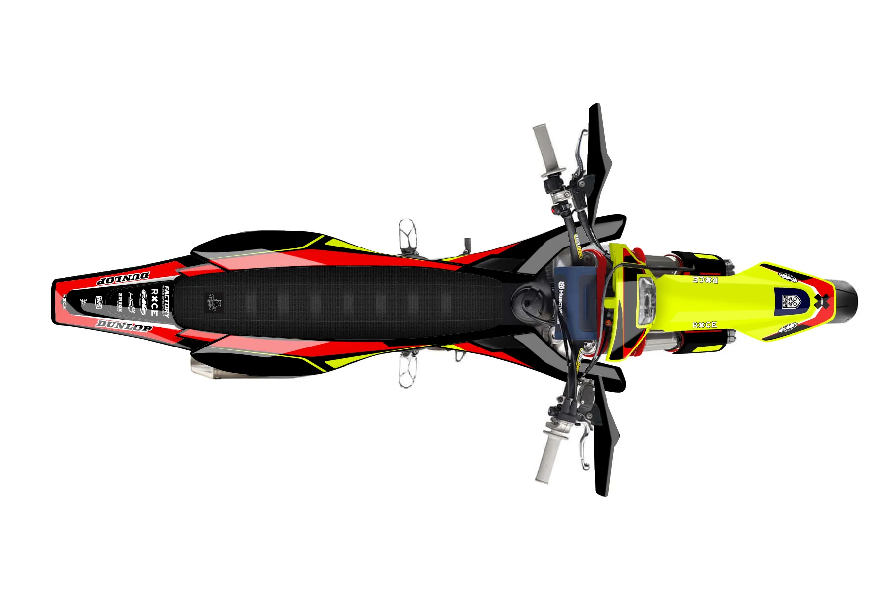«Fluorescent» — готовый комплект графики серии Flow для Husqvarna Supermoto Graphic Kit Husqvarna FE 450 2017. В комплекте: графика на бак и боковые облицовки, крылья (переднее и заднее), передний щиток, номерные таблички, защита вилки. Материал: ПВХ-винил 80 мкр с холодной ламинацией 300 мкр, общая толщина 380 мкр; покрытие глянцевое или матовое на выбор. Устойчив к UV-излучению, воде, бензину и мойке высокого давления. Клей акриловый на сольвентной основе — постоянный, для гибких пластиков. На простых поверхностях монтируется без нагрева; для сложных изгибов рекомендуем фен. Этот пресет можно заказать как есть или взять за основу в конструкторе: поменять цвета, добавить стартовый номер и свой бренд. Производство — 3–5 рабочих дней, доставка по России СДЭКом или Почтой, по СНГ — курьерскими службами.