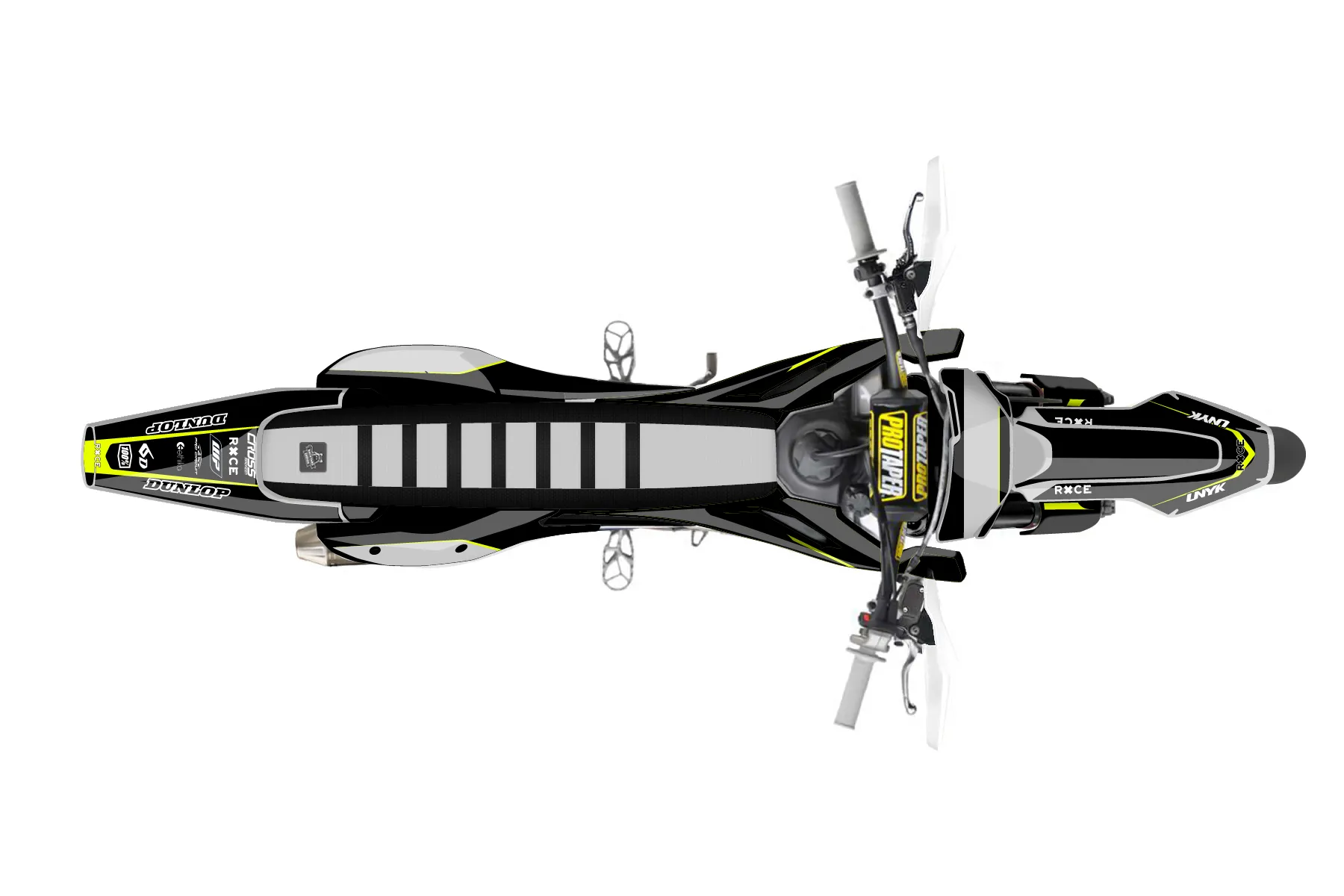 «Cyber Pirate» — готовый комплект графики серии Flow для Husqvarna Supermoto Graphic Kit Husqvarna FS450 2016. В комплекте: графика на бак и боковые облицовки, крылья (переднее и заднее), передний щиток, номерные таблички, защита вилки. Материал: ПВХ-винил 80 мкр с холодной ламинацией 300 мкр, общая толщина 380 мкр; покрытие глянцевое или матовое на выбор. Устойчив к UV-излучению, воде, бензину и мойке высокого давления. Клей акриловый на сольвентной основе — постоянный, для гибких пластиков. На простых поверхностях монтируется без нагрева; для сложных изгибов рекомендуем фен. Этот пресет можно заказать как есть или взять за основу в конструкторе: поменять цвета, добавить стартовый номер и свой бренд. Производство — 3–5 рабочих дней, доставка по России СДЭКом или Почтой, по СНГ — курьерскими службами.