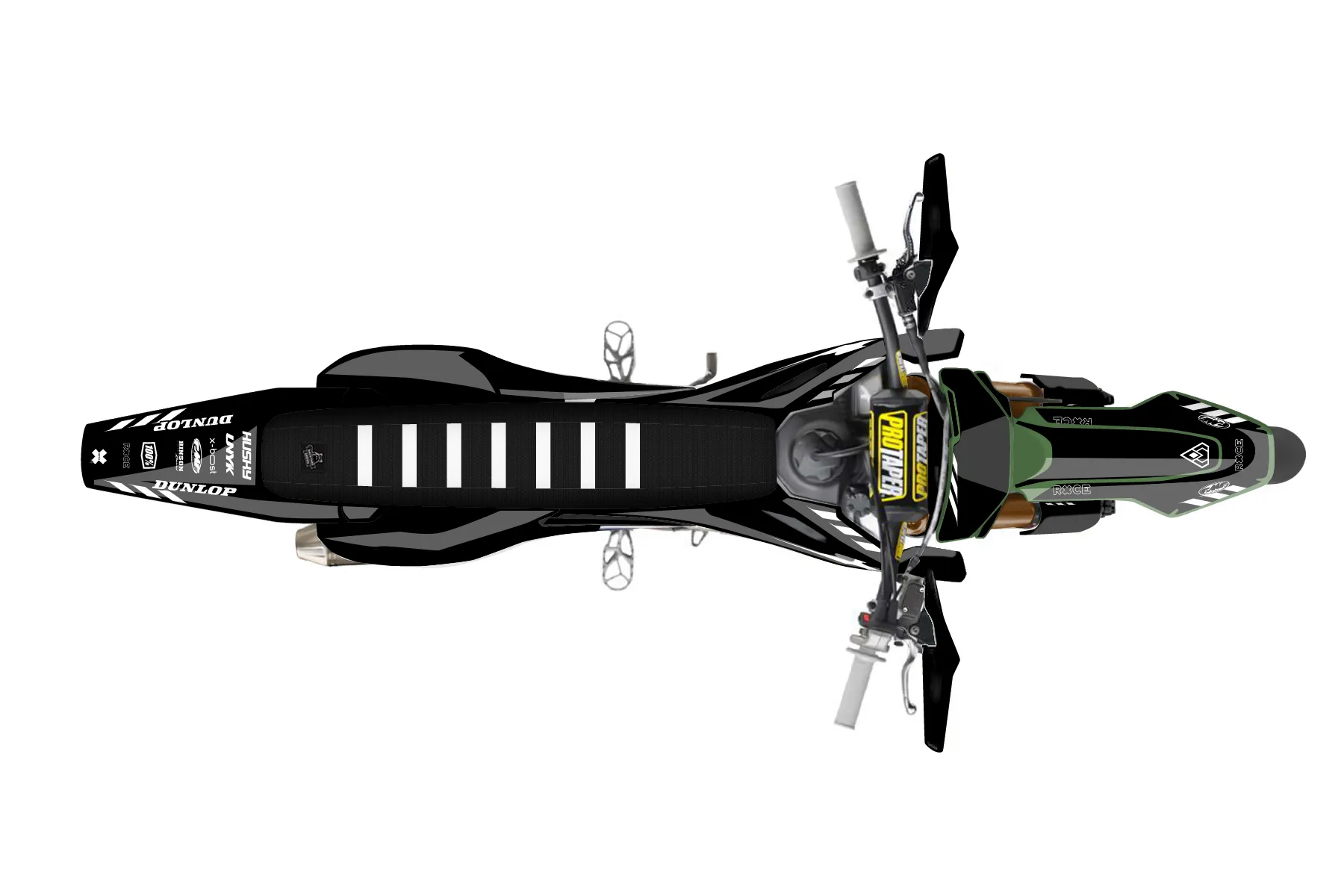 «All-Star» — готовый комплект графики серии Maverick для Husqvarna Supermoto Graphic Kit Husqvarna FS450 2016. В комплекте: графика на бак и боковые облицовки, крылья (переднее и заднее), передний щиток, номерные таблички, защита вилки. Материал: ПВХ-винил 80 мкр с холодной ламинацией 300 мкр, общая толщина 380 мкр; покрытие глянцевое или матовое на выбор. Устойчив к UV-излучению, воде, бензину и мойке высокого давления. Клей акриловый на сольвентной основе — постоянный, для гибких пластиков. На простых поверхностях монтируется без нагрева; для сложных изгибов рекомендуем фен. Этот пресет можно заказать как есть или взять за основу в конструкторе: поменять цвета, добавить стартовый номер и свой бренд. Производство — 3–5 рабочих дней, доставка по России СДЭКом или Почтой, по СНГ — курьерскими службами.