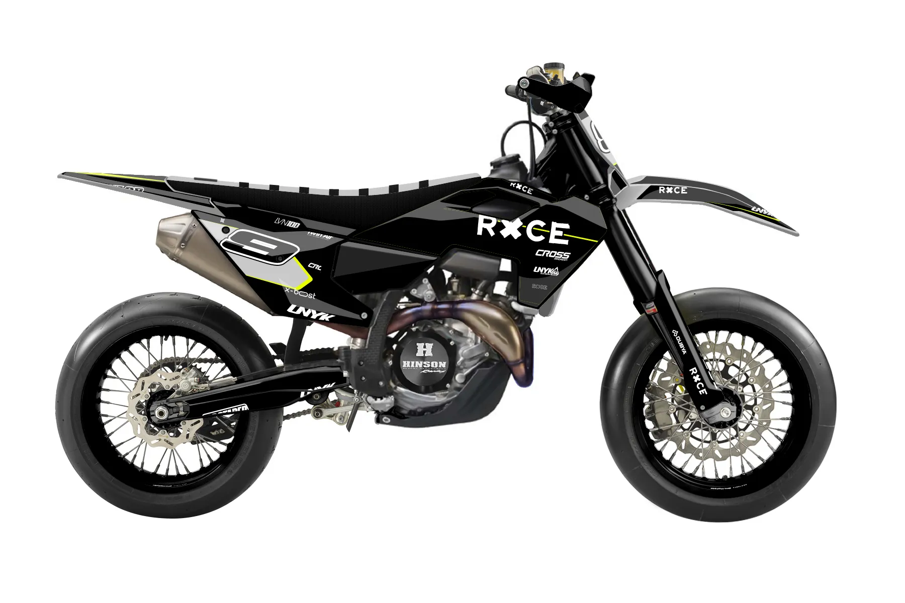 «Cyber Pirate» — готовый комплект графики серии Flow для Husqvarna Supermoto Graphic Kit Husqvarna FS450 2019. В комплекте: графика на бак и боковые облицовки, крылья (переднее и заднее), передний щиток, номерные таблички, защита вилки. Материал: ПВХ-винил 80 мкр с холодной ламинацией 300 мкр, общая толщина 380 мкр; покрытие глянцевое или матовое на выбор. Устойчив к UV-излучению, воде, бензину и мойке высокого давления. Клей акриловый на сольвентной основе — постоянный, для гибких пластиков. На простых поверхностях монтируется без нагрева; для сложных изгибов рекомендуем фен. Этот пресет можно заказать как есть или взять за основу в конструкторе: поменять цвета, добавить стартовый номер и свой бренд. Производство — 3–5 рабочих дней, доставка по России СДЭКом или Почтой, по СНГ — курьерскими службами.