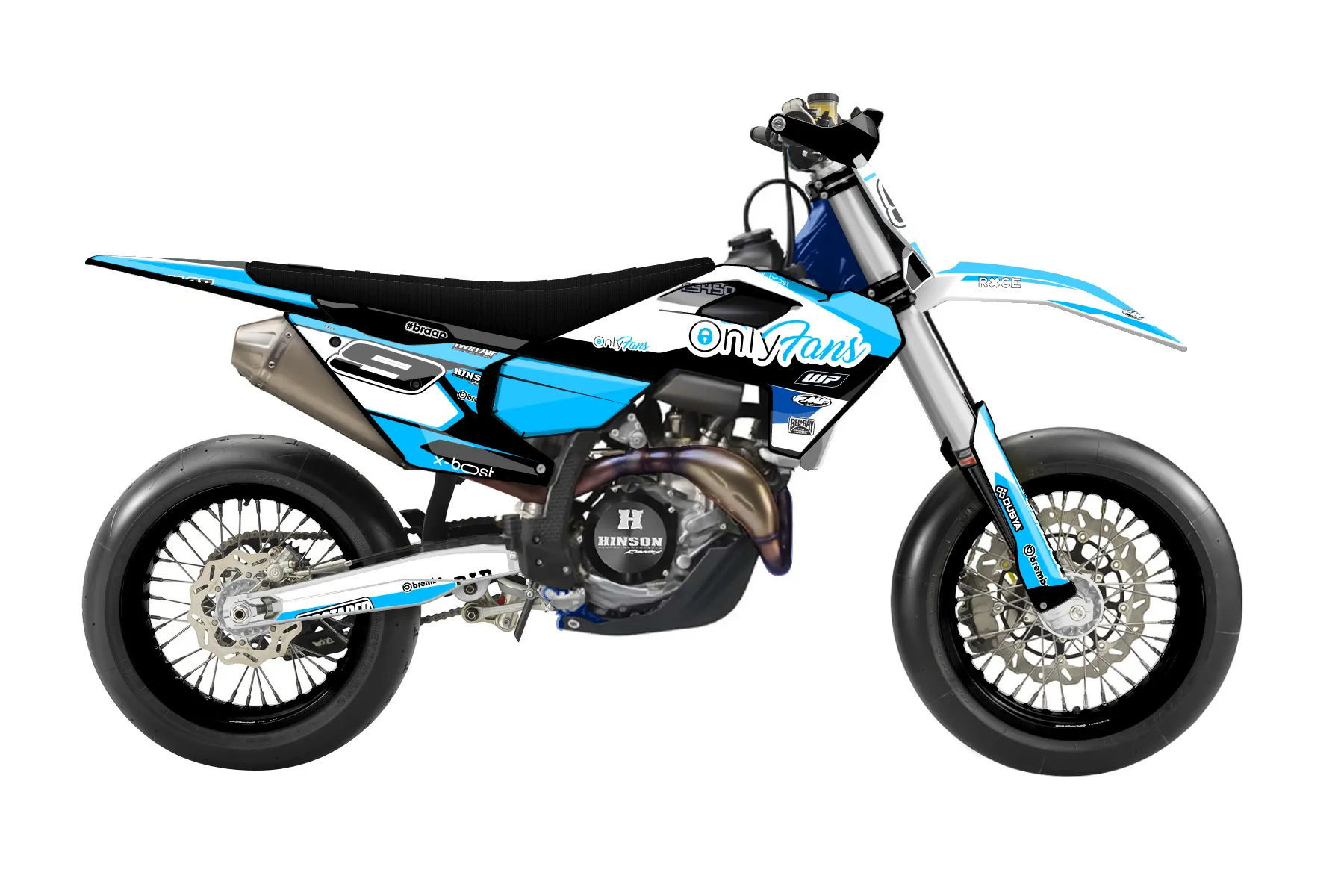 «Onlyfans» — готовый комплект графики серии Flow для Husqvarna Supermoto Graphic Kit Husqvarna FS450 2019. В комплекте: графика на бак и боковые облицовки, крылья (переднее и заднее), передний щиток, номерные таблички, защита вилки. Материал: ПВХ-винил 80 мкр с холодной ламинацией 300 мкр, общая толщина 380 мкр; покрытие глянцевое или матовое на выбор. Устойчив к UV-излучению, воде, бензину и мойке высокого давления. Клей акриловый на сольвентной основе — постоянный, для гибких пластиков. На простых поверхностях монтируется без нагрева; для сложных изгибов рекомендуем фен. Этот пресет можно заказать как есть или взять за основу в конструкторе: поменять цвета, добавить стартовый номер и свой бренд. Производство — 3–5 рабочих дней, доставка по России СДЭКом или Почтой, по СНГ — курьерскими службами.