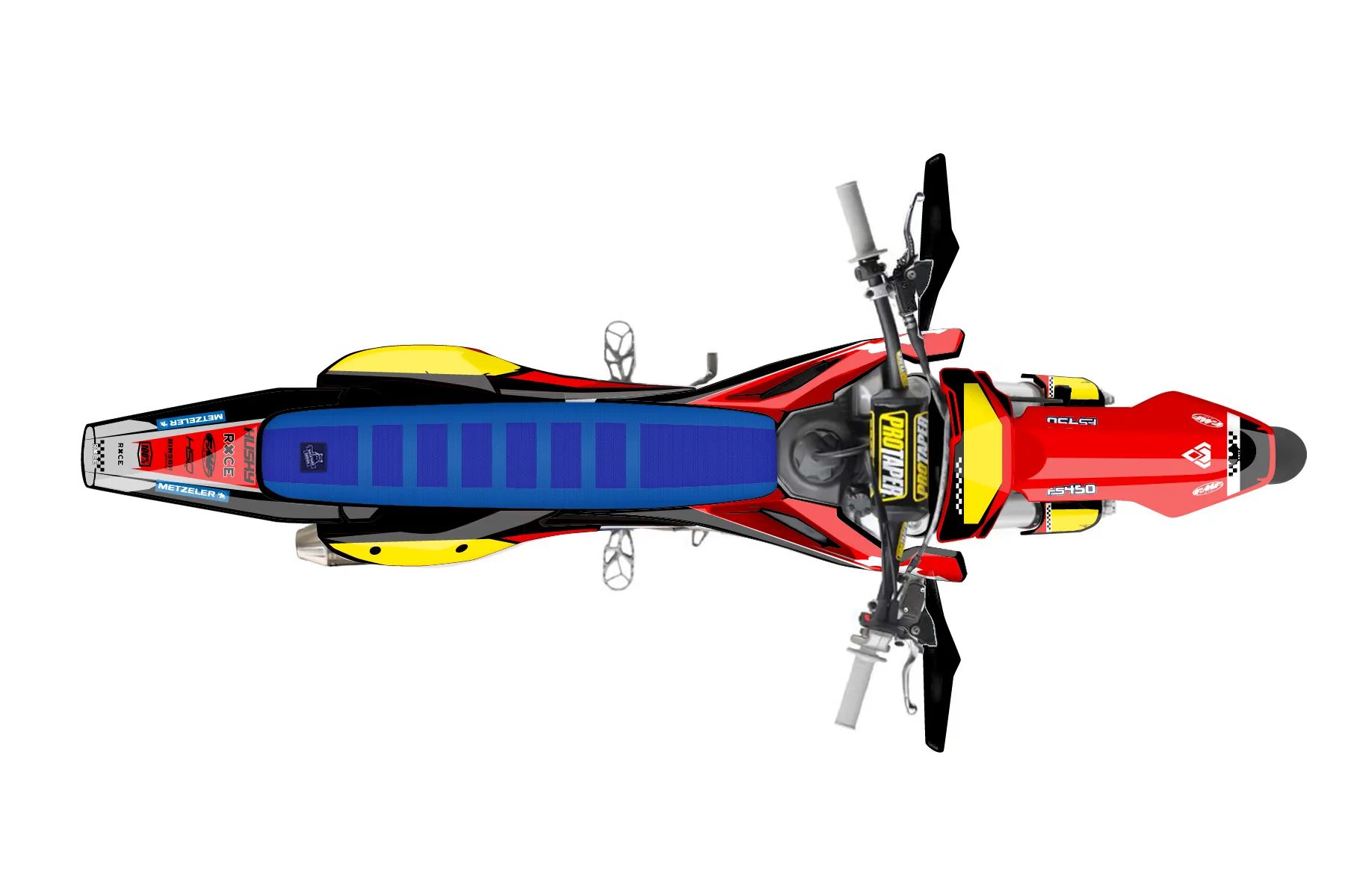 «CustomDesign» — готовый комплект графики серии Staple для Husqvarna Supermoto Graphic Kit Husqvarna FS450 2019. В комплекте: графика на бак и боковые облицовки, крылья (переднее и заднее), передний щиток, номерные таблички, защита вилки. Материал: ПВХ-винил 80 мкр с холодной ламинацией 300 мкр, общая толщина 380 мкр; покрытие глянцевое или матовое на выбор. Устойчив к UV-излучению, воде, бензину и мойке высокого давления. Клей акриловый на сольвентной основе — постоянный, для гибких пластиков. На простых поверхностях монтируется без нагрева; для сложных изгибов рекомендуем фен. Этот пресет можно заказать как есть или взять за основу в конструкторе: поменять цвета, добавить стартовый номер и свой бренд. Производство — 3–5 рабочих дней, доставка по России СДЭКом или Почтой, по СНГ — курьерскими службами.