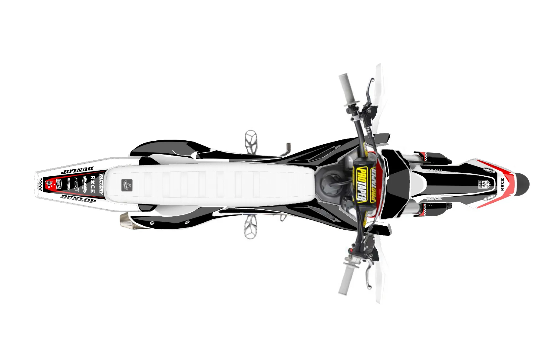 «CustomDesign» — готовый комплект графики серии Staple для Husqvarna Supermoto Graphic Kit Husqvarna FS450 2019. В комплекте: графика на бак и боковые облицовки, крылья (переднее и заднее), передний щиток, номерные таблички, защита вилки. Материал: ПВХ-винил 80 мкр с холодной ламинацией 300 мкр, общая толщина 380 мкр; покрытие глянцевое или матовое на выбор. Устойчив к UV-излучению, воде, бензину и мойке высокого давления. Клей акриловый на сольвентной основе — постоянный, для гибких пластиков. На простых поверхностях монтируется без нагрева; для сложных изгибов рекомендуем фен. Этот пресет можно заказать как есть или взять за основу в конструкторе: поменять цвета, добавить стартовый номер и свой бренд. Производство — 3–5 рабочих дней, доставка по России СДЭКом или Почтой, по СНГ — курьерскими службами.