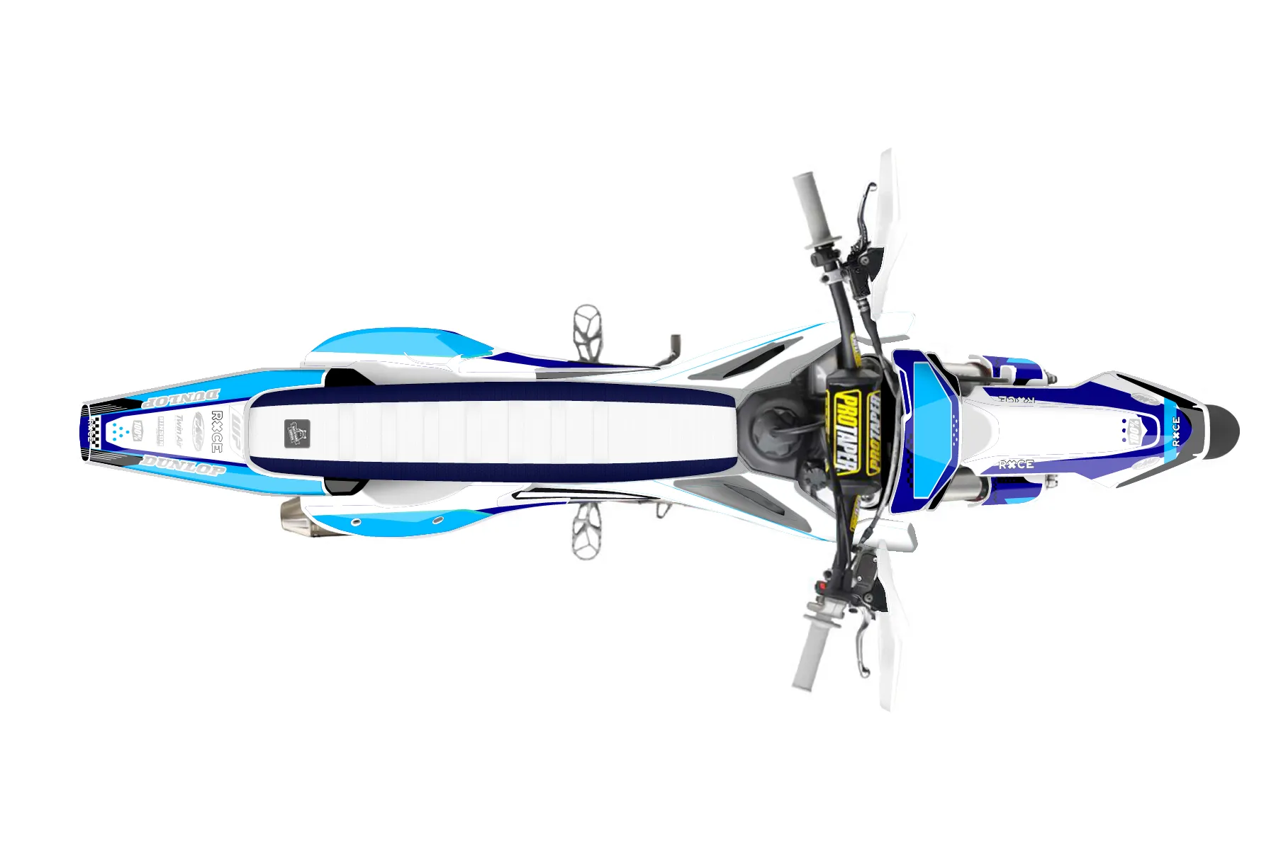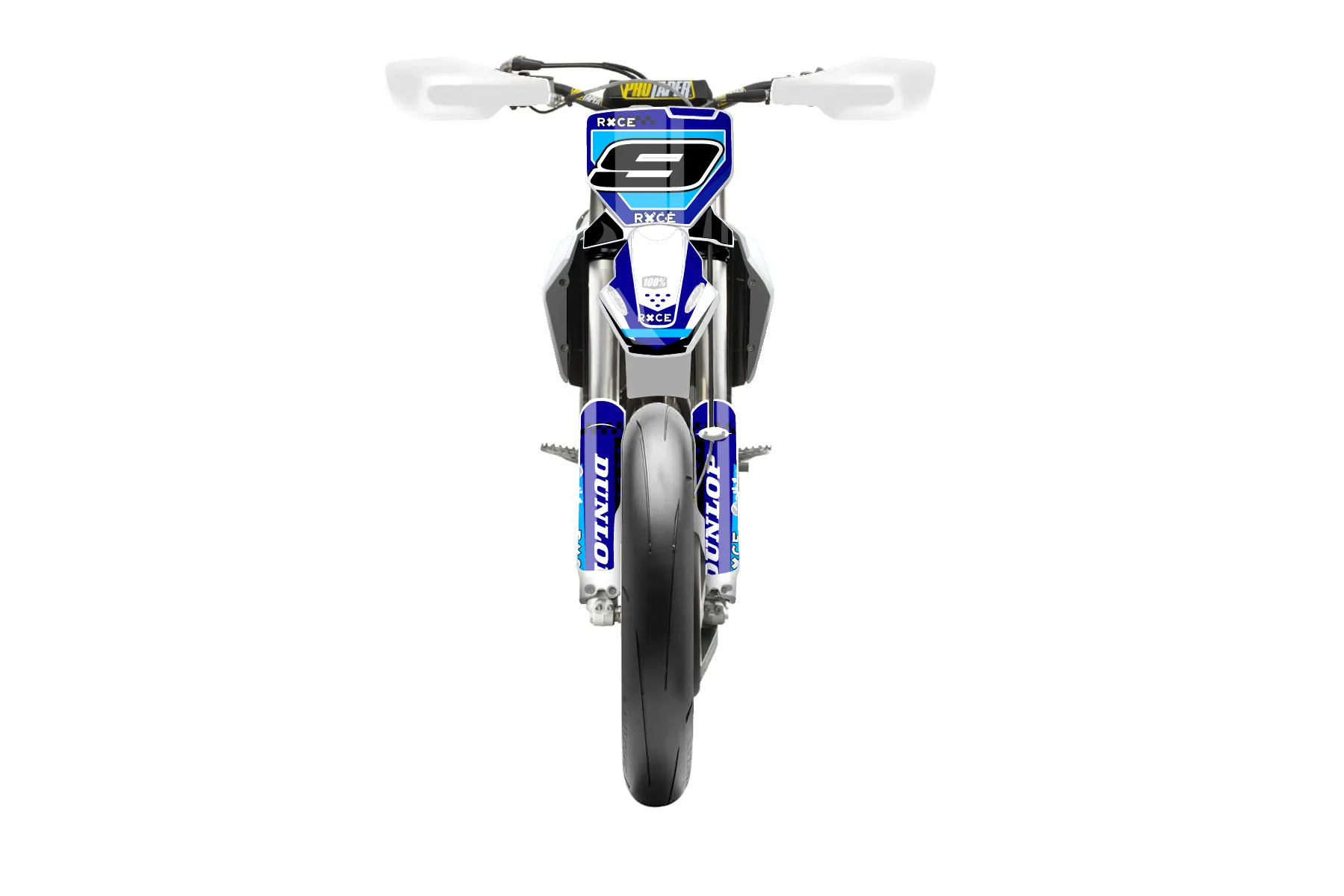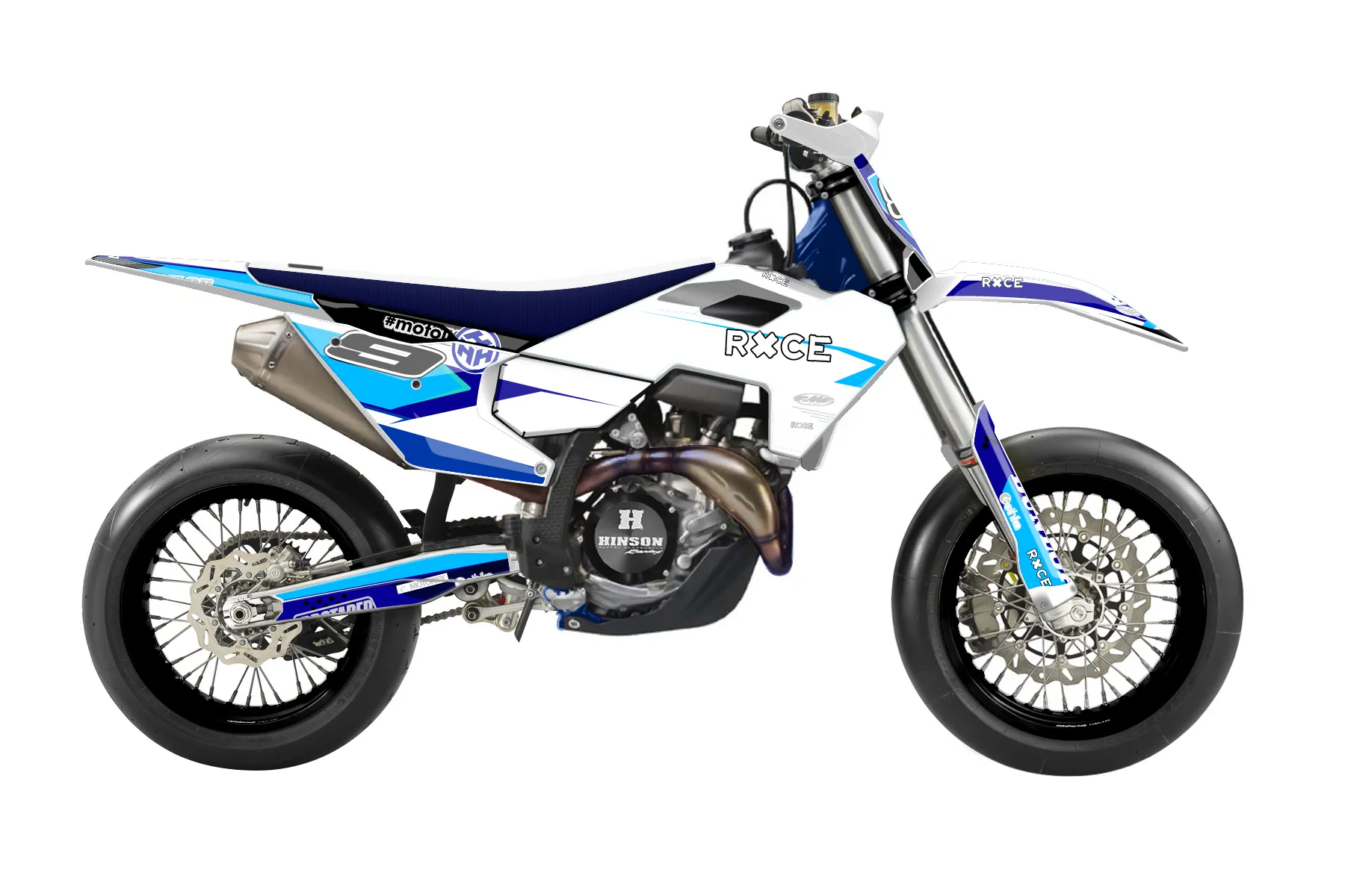 «CustomDesign White and Blue» — готовый комплект графики серии Staple для Husqvarna Supermoto Graphic Kit Husqvarna FS450 2019. В комплекте: графика на бак и боковые облицовки, крылья (переднее и заднее), передний щиток, номерные таблички, защита вилки. Материал: ПВХ-винил 80 мкр с холодной ламинацией 300 мкр, общая толщина 380 мкр; покрытие глянцевое или матовое на выбор. Устойчив к UV-излучению, воде, бензину и мойке высокого давления. Клей акриловый на сольвентной основе — постоянный, для гибких пластиков. На простых поверхностях монтируется без нагрева; для сложных изгибов рекомендуем фен. Этот пресет можно заказать как есть или взять за основу в конструкторе: поменять цвета, добавить стартовый номер и свой бренд. Производство — 3–5 рабочих дней, доставка по России СДЭКом или Почтой, по СНГ — курьерскими службами.