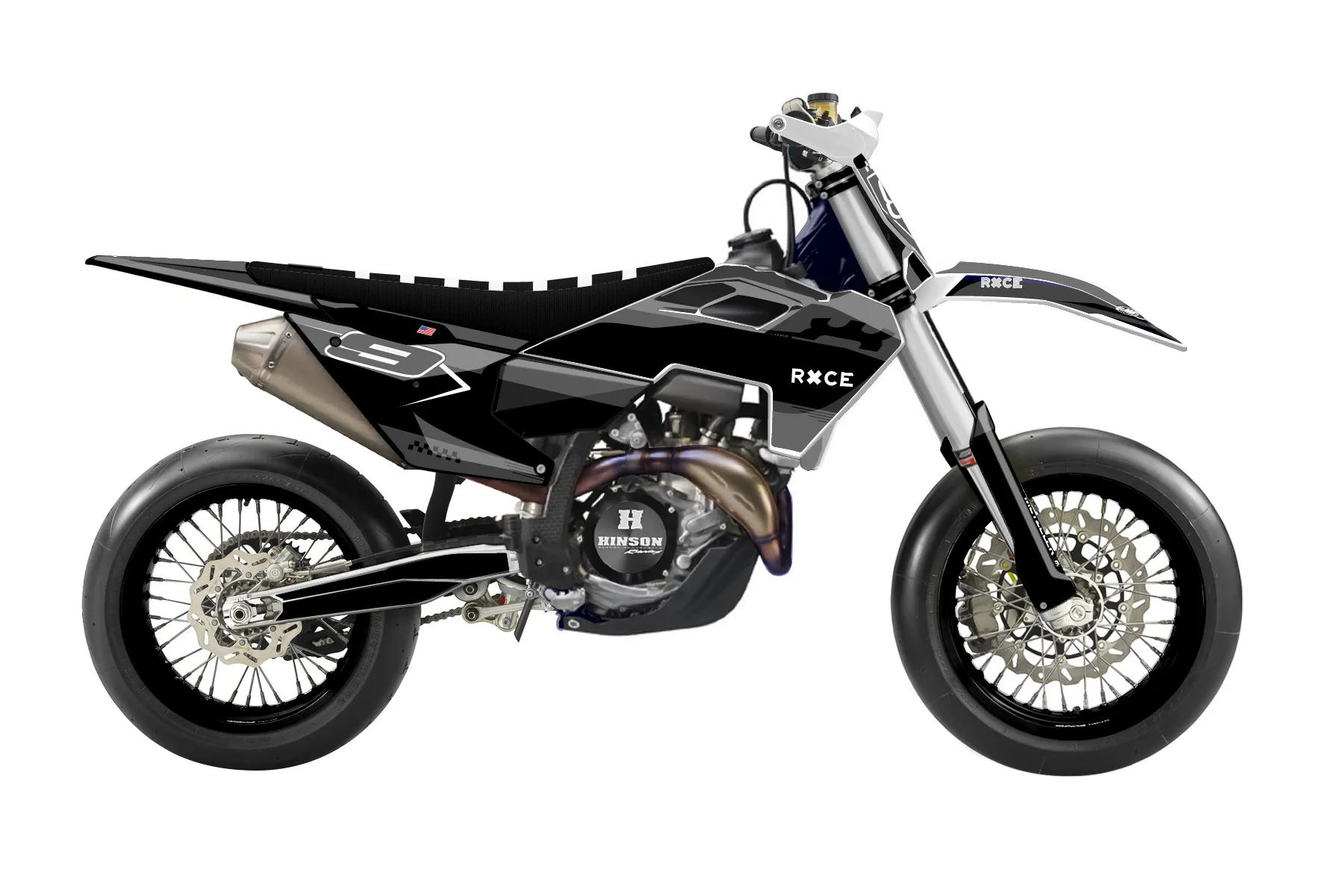 «husky5» — готовый комплект графики серии Staple для Husqvarna Supermoto Graphic Kit Husqvarna FS450 2019. В комплекте: графика на бак и боковые облицовки, крылья (переднее и заднее), передний щиток, номерные таблички, защита вилки. Материал: ПВХ-винил 80 мкр с холодной ламинацией 300 мкр, общая толщина 380 мкр; покрытие глянцевое или матовое на выбор. Устойчив к UV-излучению, воде, бензину и мойке высокого давления. Клей акриловый на сольвентной основе — постоянный, для гибких пластиков. На простых поверхностях монтируется без нагрева; для сложных изгибов рекомендуем фен. Этот пресет можно заказать как есть или взять за основу в конструкторе: поменять цвета, добавить стартовый номер и свой бренд. Производство — 3–5 рабочих дней, доставка по России СДЭКом или Почтой, по СНГ — курьерскими службами.