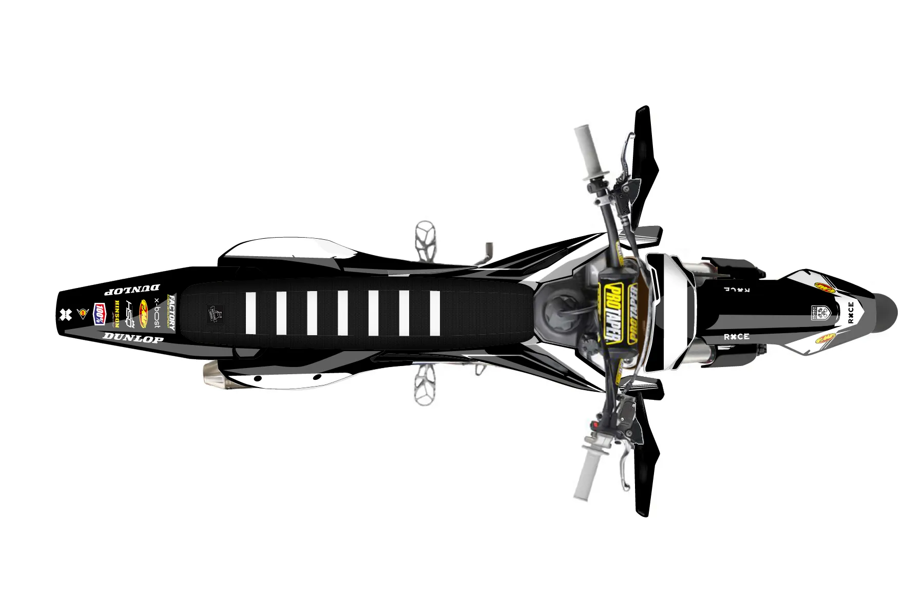 «Predicted» — готовый комплект графики серии Untucked для Husqvarna Supermoto Graphic Kit Husqvarna FS450 2019. В комплекте: графика на бак и боковые облицовки, крылья (переднее и заднее), передний щиток, номерные таблички, защита вилки. Материал: ПВХ-винил 80 мкр с холодной ламинацией 300 мкр, общая толщина 380 мкр; покрытие глянцевое или матовое на выбор. Устойчив к UV-излучению, воде, бензину и мойке высокого давления. Клей акриловый на сольвентной основе — постоянный, для гибких пластиков. На простых поверхностях монтируется без нагрева; для сложных изгибов рекомендуем фен. Этот пресет можно заказать как есть или взять за основу в конструкторе: поменять цвета, добавить стартовый номер и свой бренд. Производство — 3–5 рабочих дней, доставка по России СДЭКом или Почтой, по СНГ — курьерскими службами.