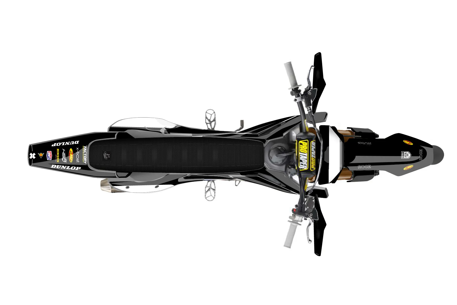 «Race» — готовый комплект графики серии Untucked для Husqvarna Supermoto Graphic Kit Husqvarna FS450 2019. В комплекте: графика на бак и боковые облицовки, крылья (переднее и заднее), передний щиток, номерные таблички, защита вилки. Материал: ПВХ-винил 80 мкр с холодной ламинацией 300 мкр, общая толщина 380 мкр; покрытие глянцевое или матовое на выбор. Устойчив к UV-излучению, воде, бензину и мойке высокого давления. Клей акриловый на сольвентной основе — постоянный, для гибких пластиков. На простых поверхностях монтируется без нагрева; для сложных изгибов рекомендуем фен. Этот пресет можно заказать как есть или взять за основу в конструкторе: поменять цвета, добавить стартовый номер и свой бренд. Производство — 3–5 рабочих дней, доставка по России СДЭКом или Почтой, по СНГ — курьерскими службами.