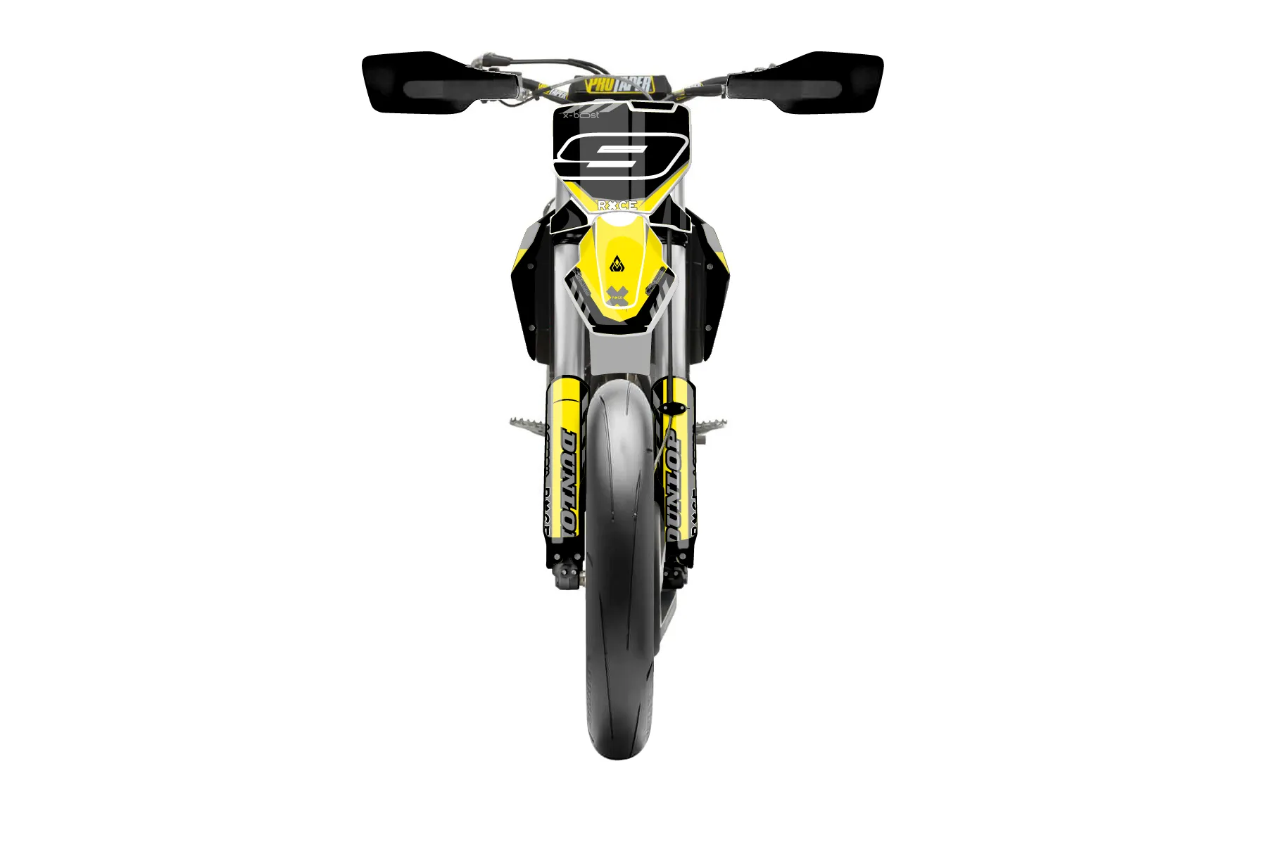«Black and yellow» — готовый комплект графики серии Maverick для Husqvarna Supermoto Graphic Kit Husqvarna FS450 2021. В комплекте: графика на бак и боковые облицовки, крылья (переднее и заднее), передний щиток, номерные таблички, защита вилки. Материал: ПВХ-винил 80 мкр с холодной ламинацией 300 мкр, общая толщина 380 мкр; покрытие глянцевое или матовое на выбор. Устойчив к UV-излучению, воде, бензину и мойке высокого давления. Клей акриловый на сольвентной основе — постоянный, для гибких пластиков. На простых поверхностях монтируется без нагрева; для сложных изгибов рекомендуем фен. Этот пресет можно заказать как есть или взять за основу в конструкторе: поменять цвета, добавить стартовый номер и свой бренд. Производство — 3–5 рабочих дней, доставка по России СДЭКом или Почтой, по СНГ — курьерскими службами.