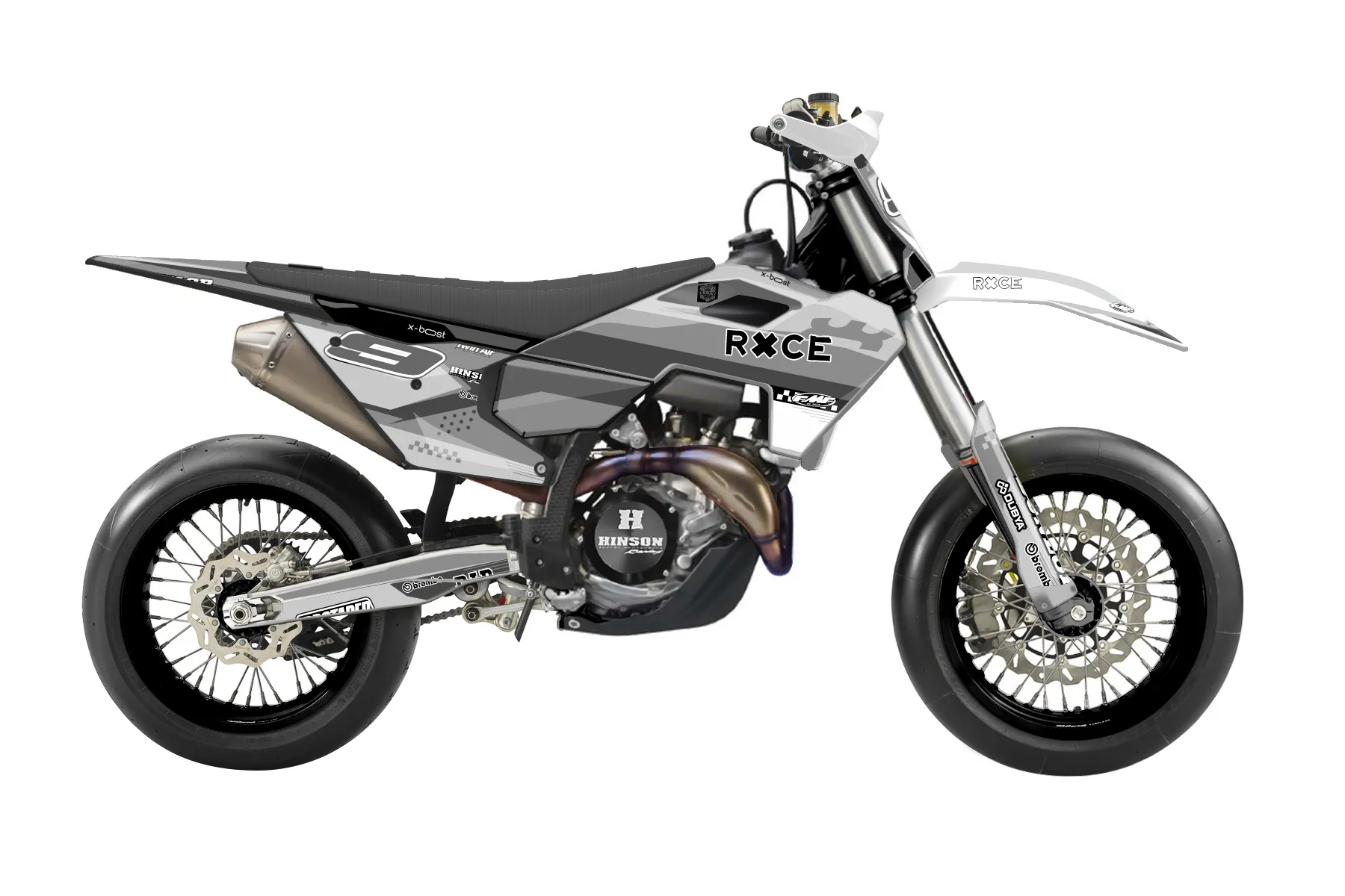 «Raw» — готовый комплект графики серии Staple для Husqvarna Supermoto Graphic Kit Husqvarna FS450 2021. В комплекте: графика на бак и боковые облицовки, крылья (переднее и заднее), передний щиток, номерные таблички, защита вилки. Материал: ПВХ-винил 80 мкр с холодной ламинацией 300 мкр, общая толщина 380 мкр; покрытие глянцевое или матовое на выбор. Устойчив к UV-излучению, воде, бензину и мойке высокого давления. Клей акриловый на сольвентной основе — постоянный, для гибких пластиков. На простых поверхностях монтируется без нагрева; для сложных изгибов рекомендуем фен. Этот пресет можно заказать как есть или взять за основу в конструкторе: поменять цвета, добавить стартовый номер и свой бренд. Производство — 3–5 рабочих дней, доставка по России СДЭКом или Почтой, по СНГ — курьерскими службами.