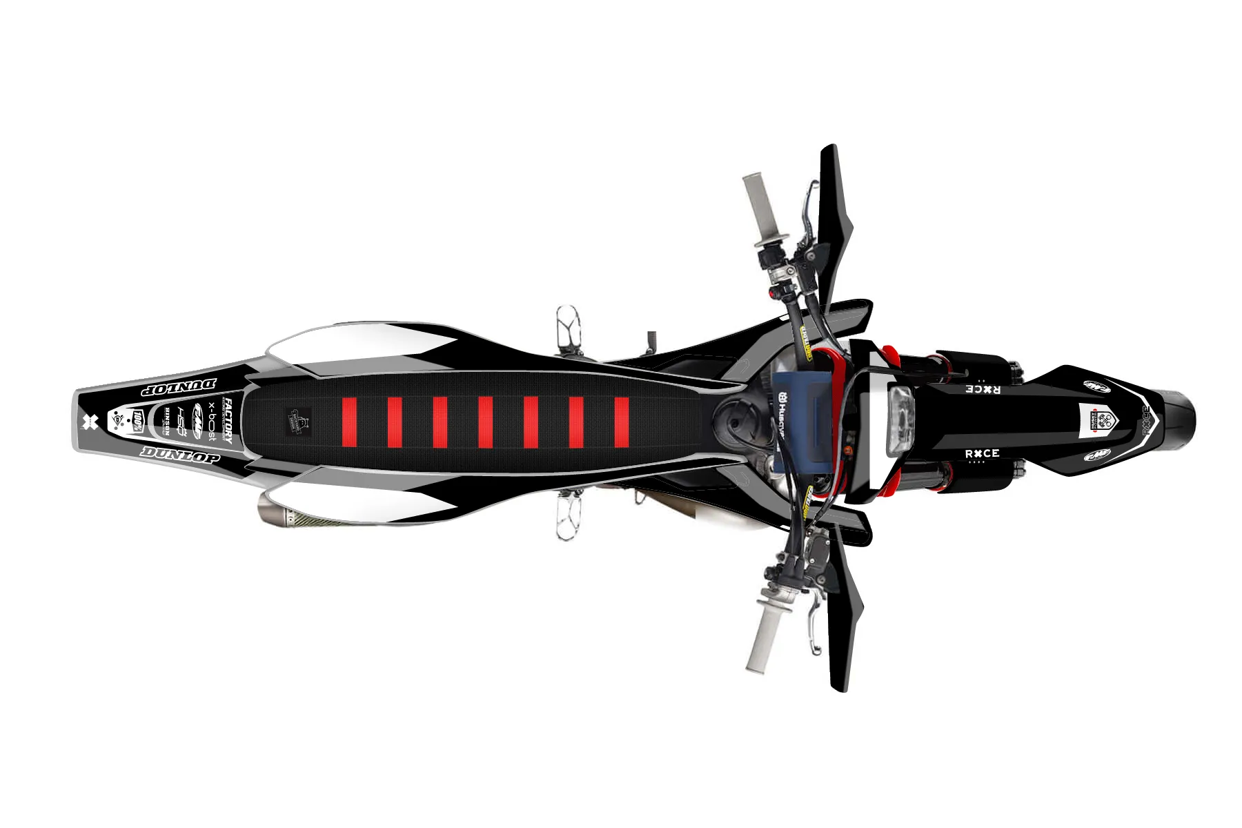 «Stunner» — готовый комплект графики серии Staple для Husqvarna Supermoto Graphic Kit Husqvarna TE 150 2017. В комплекте: графика на бак и боковые облицовки, крылья (переднее и заднее), передний щиток, номерные таблички, защита вилки. Материал: ПВХ-винил 80 мкр с холодной ламинацией 300 мкр, общая толщина 380 мкр; покрытие глянцевое или матовое на выбор. Устойчив к UV-излучению, воде, бензину и мойке высокого давления. Клей акриловый на сольвентной основе — постоянный, для гибких пластиков. На простых поверхностях монтируется без нагрева; для сложных изгибов рекомендуем фен. Этот пресет можно заказать как есть или взять за основу в конструкторе: поменять цвета, добавить стартовый номер и свой бренд. Производство — 3–5 рабочих дней, доставка по России СДЭКом или Почтой, по СНГ — курьерскими службами.