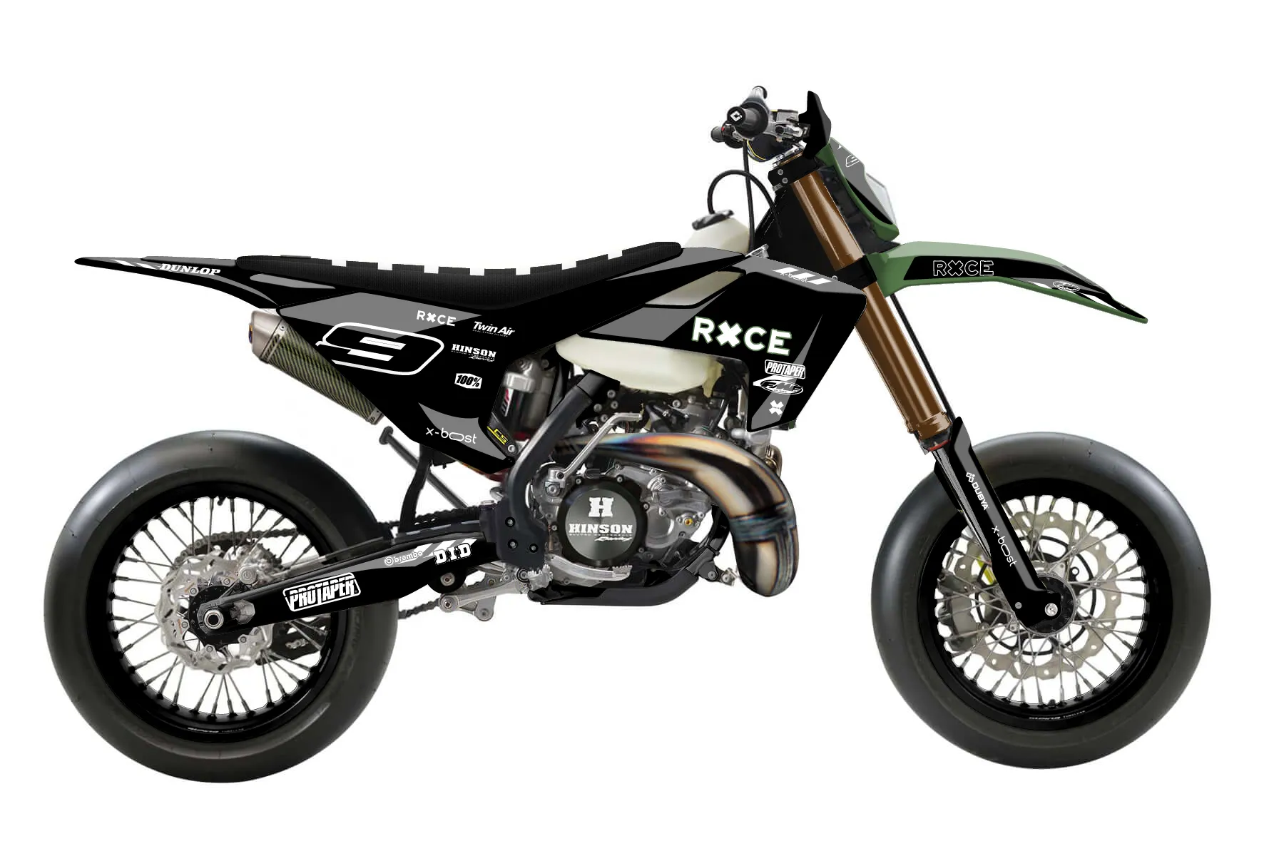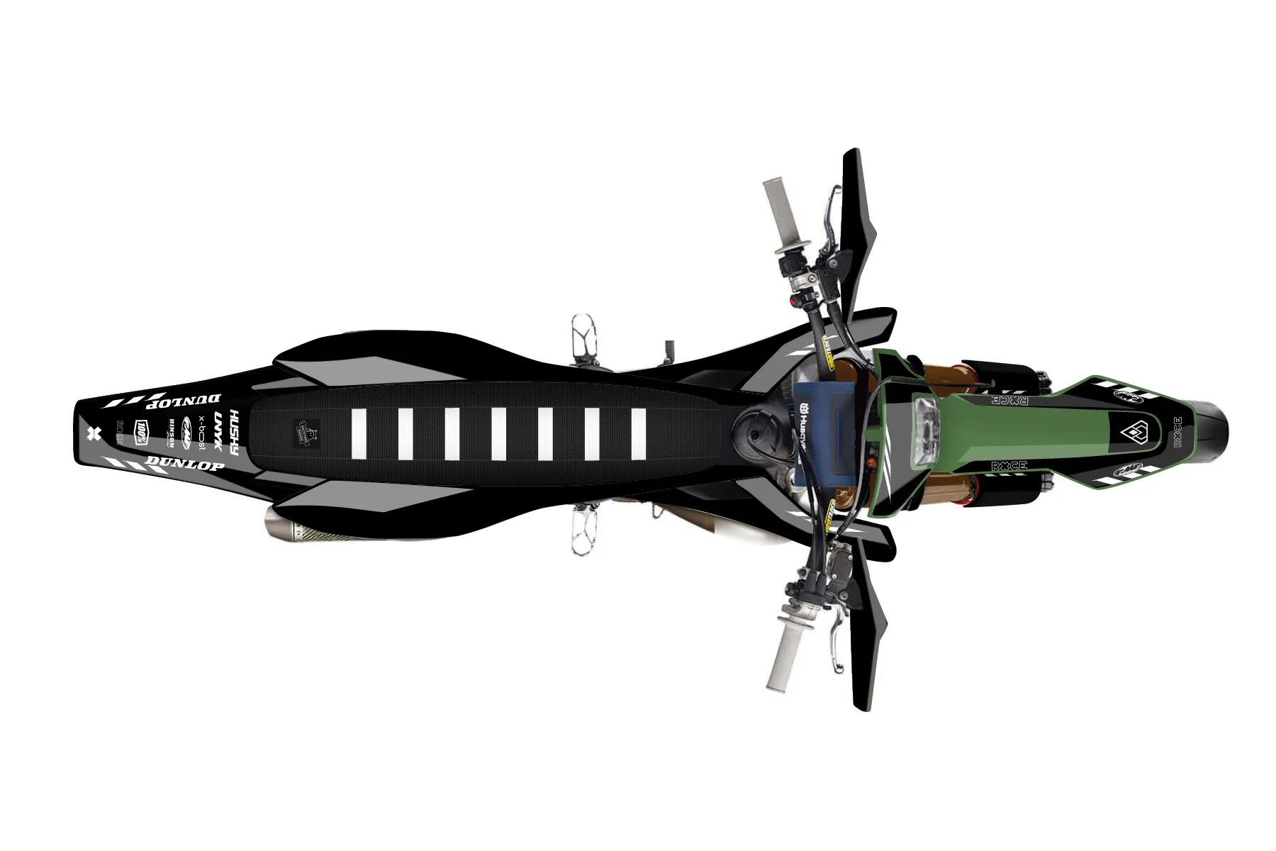 «All-Star» — готовый комплект графики серии Maverick для Husqvarna Supermoto Graphic Kit Husqvarna TE 250 2017. В комплекте: графика на бак и боковые облицовки, крылья (переднее и заднее), передний щиток, номерные таблички, защита вилки. Материал: ПВХ-винил 80 мкр с холодной ламинацией 300 мкр, общая толщина 380 мкр; покрытие глянцевое или матовое на выбор. Устойчив к UV-излучению, воде, бензину и мойке высокого давления. Клей акриловый на сольвентной основе — постоянный, для гибких пластиков. На простых поверхностях монтируется без нагрева; для сложных изгибов рекомендуем фен. Этот пресет можно заказать как есть или взять за основу в конструкторе: поменять цвета, добавить стартовый номер и свой бренд. Производство — 3–5 рабочих дней, доставка по России СДЭКом или Почтой, по СНГ — курьерскими службами.