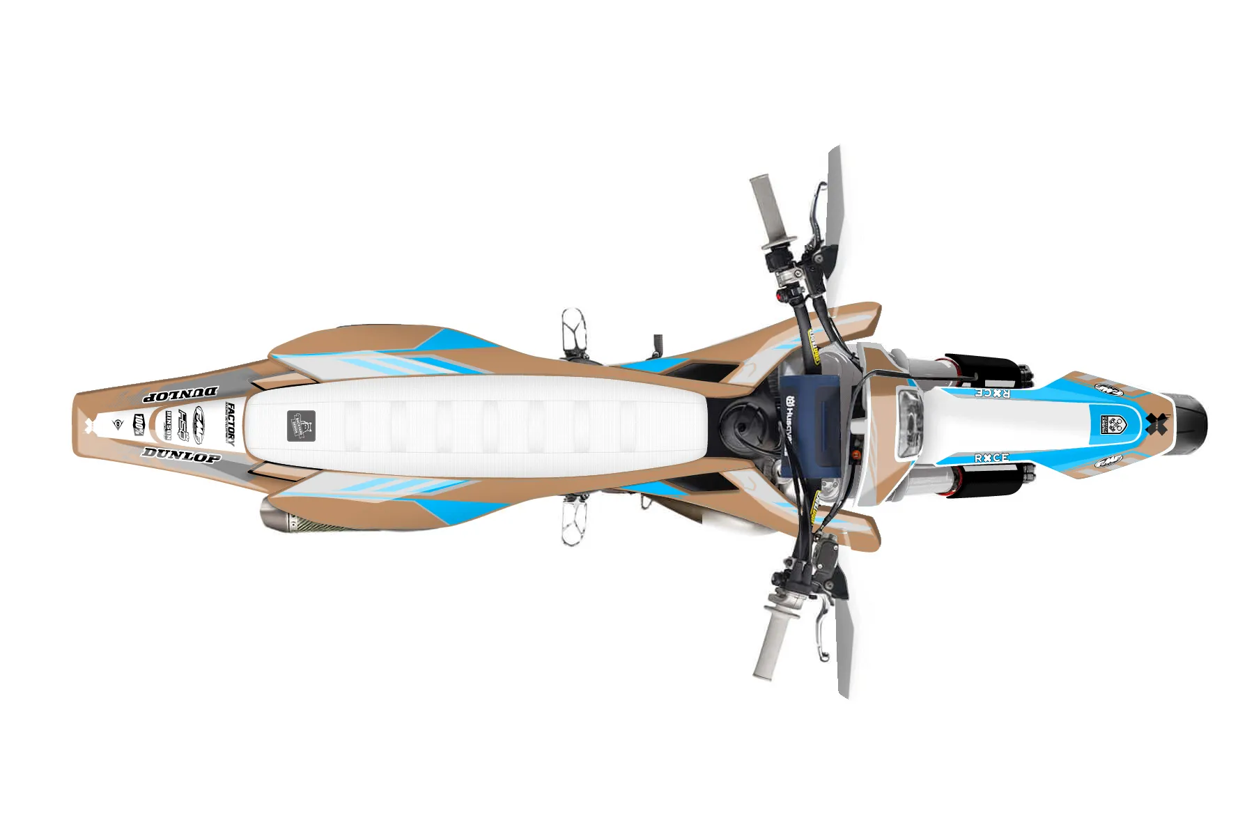 «BrownBlue» — готовый комплект графики серии Maverick для Husqvarna Supermoto Graphic Kit Husqvarna TE 300 2017. В комплекте: графика на бак и боковые облицовки, крылья (переднее и заднее), передний щиток, номерные таблички, защита вилки. Материал: ПВХ-винил 80 мкр с холодной ламинацией 300 мкр, общая толщина 380 мкр; покрытие глянцевое или матовое на выбор. Устойчив к UV-излучению, воде, бензину и мойке высокого давления. Клей акриловый на сольвентной основе — постоянный, для гибких пластиков. На простых поверхностях монтируется без нагрева; для сложных изгибов рекомендуем фен. Этот пресет можно заказать как есть или взять за основу в конструкторе: поменять цвета, добавить стартовый номер и свой бренд. Производство — 3–5 рабочих дней, доставка по России СДЭКом или Почтой, по СНГ — курьерскими службами.