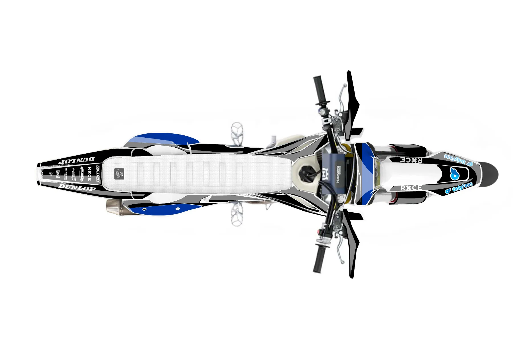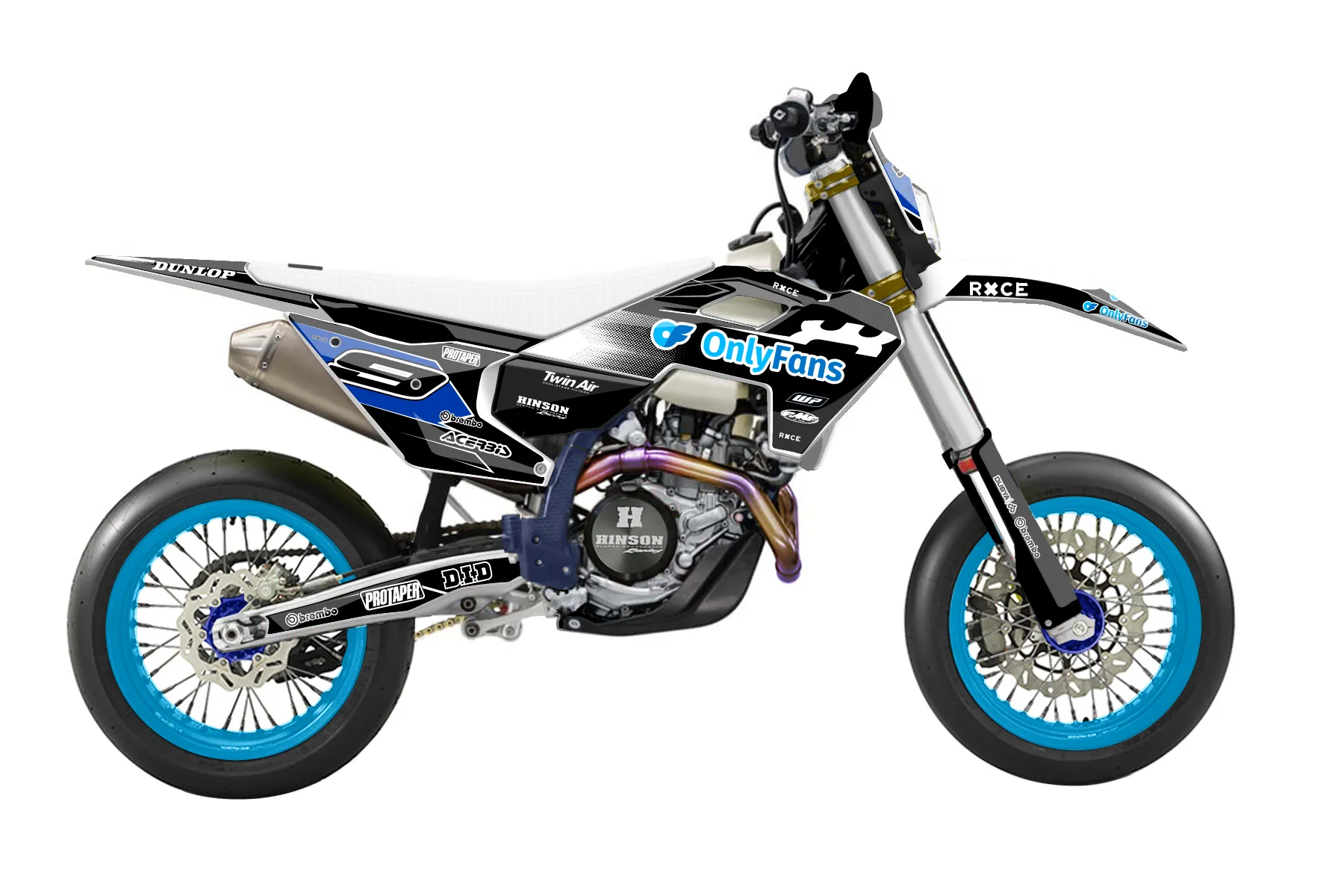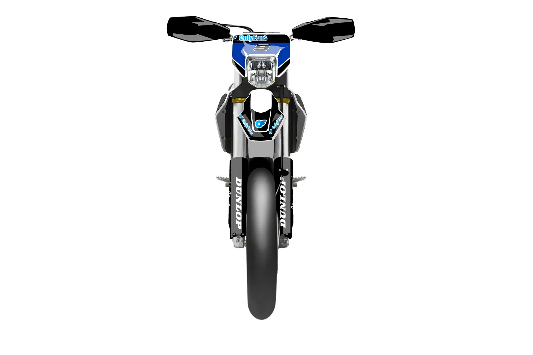 «custom of » — готовый комплект графики серии Maverick для Husqvarna Supermoto Graphic Kit Husqvarna FE 501 2024. В комплекте: графика на бак и боковые облицовки, крылья (переднее и заднее), передний щиток, номерные таблички, защита вилки. Материал: ПВХ-винил 80 мкр с холодной ламинацией 300 мкр, общая толщина 380 мкр; покрытие глянцевое или матовое на выбор. Устойчив к UV-излучению, воде, бензину и мойке высокого давления. Клей акриловый на сольвентной основе — постоянный, для гибких пластиков. На простых поверхностях монтируется без нагрева; для сложных изгибов рекомендуем фен. Этот пресет можно заказать как есть или взять за основу в конструкторе: поменять цвета, добавить стартовый номер и свой бренд. Производство — 3–5 рабочих дней, доставка по России СДЭКом или Почтой, по СНГ — курьерскими службами.